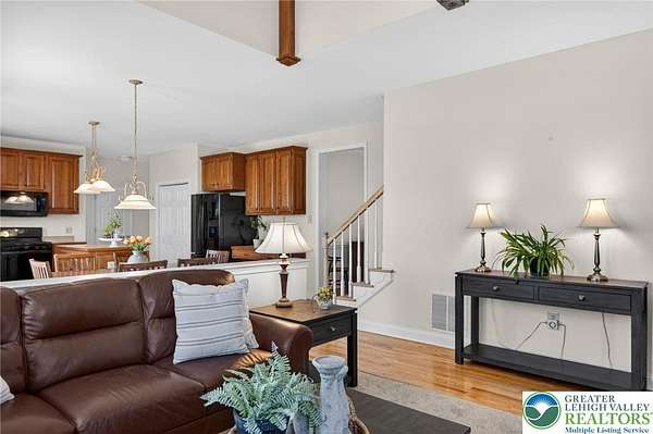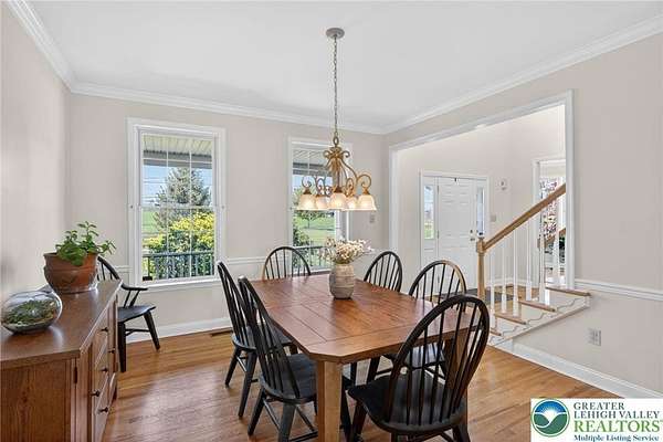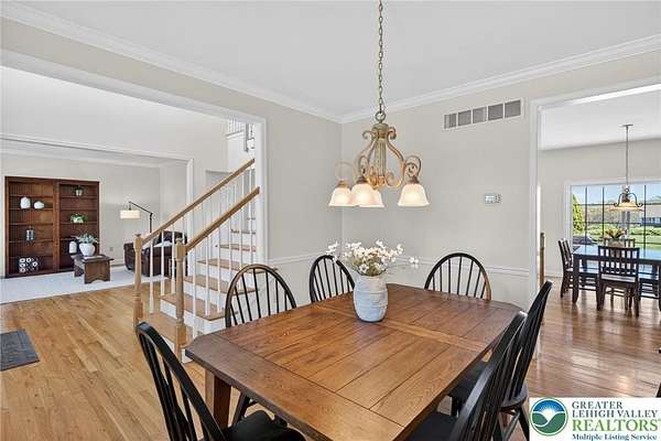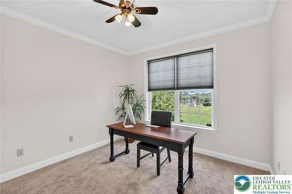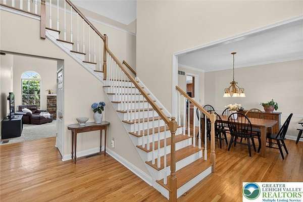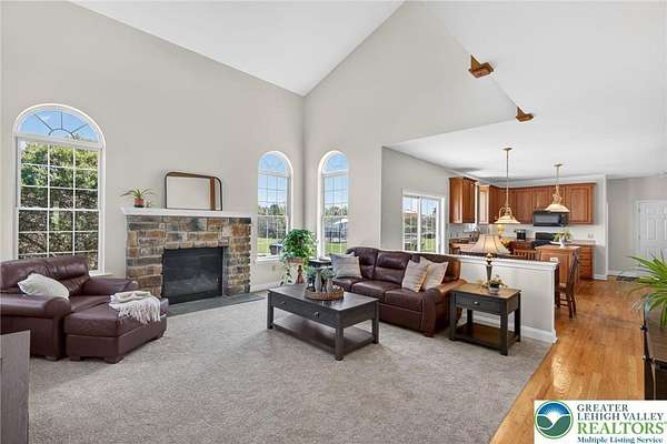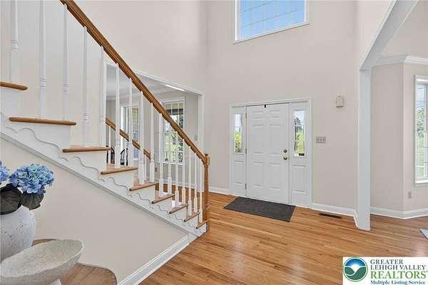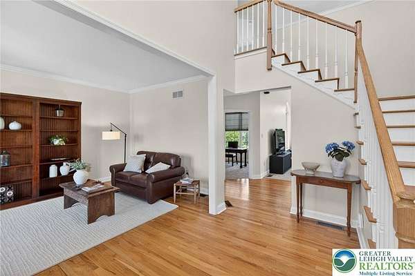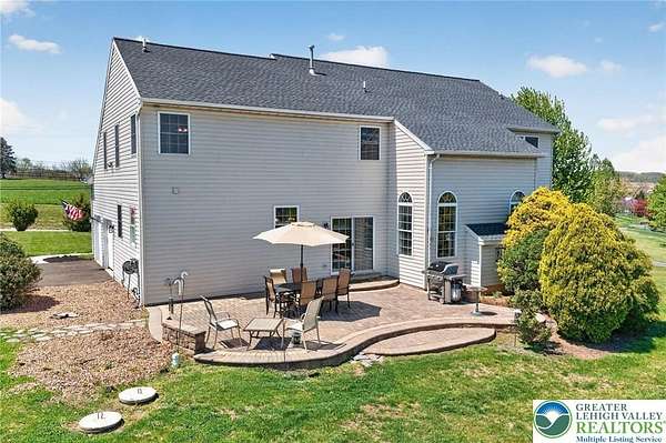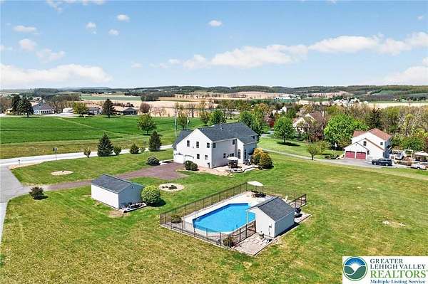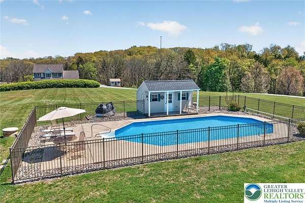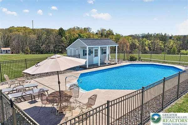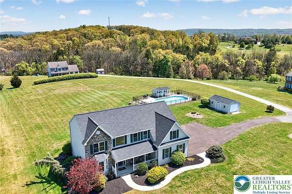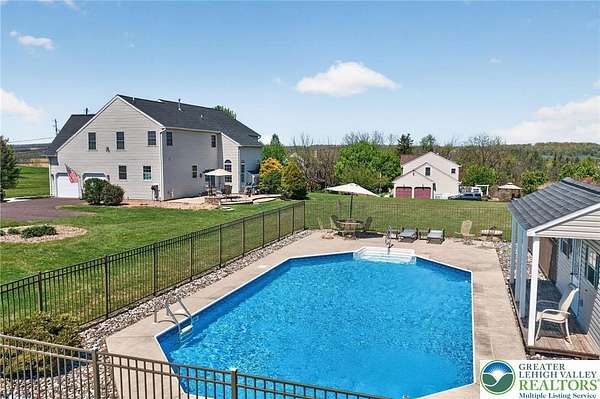 Set in the Parkland School District on a 2+ acre lot, this single family home offers scenic views and a backyard designed for relaxing and entertaining, complete with an in ground saltwater pool and pool house.The first floor features a comfortable and functional layout. A welcoming foyer leads upstairs and is flanked by a formal living room and a formal dining room, both accented with crown molding. Hardwood floors run through much of the main living areas, and fresh paint throughout the home adds a clean, updated feel. The eat in kitchen opens to the family room, where soaring ceilings, a second floor overlook, and a gas fireplace create an airy, connected space. New carpet adds a fresh touch underfoot. The kitchen includes a center island and access to the rear stone patio. A bright laundry room, half bath, and a first floor office add flexibility to the layout.Upstairs, a two staircase design allows access from both the foyer and the kitchen. This level includes four bedrooms and a full hall bath, along with a spacious primary suite featuring cathedral ceilings, a sitting area, two walk in closets, and an en suite bath with soaking tub. New carpet continues throughout the second floor.The basement is unfinished and provides ample storage or potential for future use.Outside, the backyard is designed for everyday enjoyment, with a relaxing porch, storage shed, and a fenced in ground saltwater pool with pool house. The pool has a newer liner and updated filter, and the roof was replaced in 2025. A two car garage and a convenient location near major routes, shopping, and everyday amenities complete the property.A well balanced home offering space, functionality, and a setting that is easy to enjoy year round.