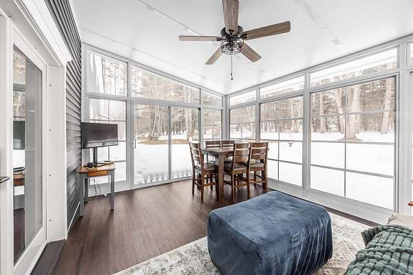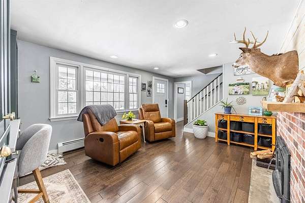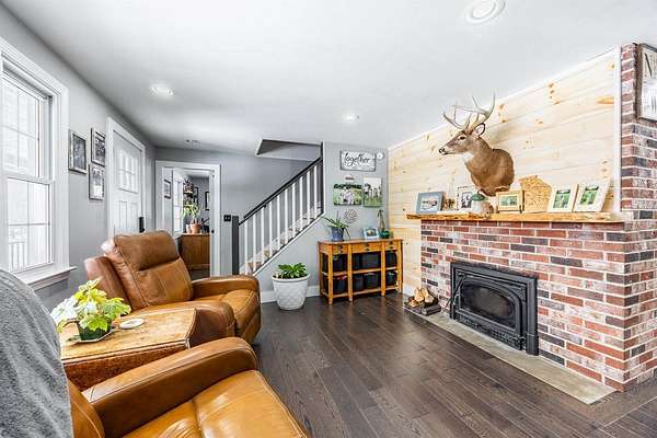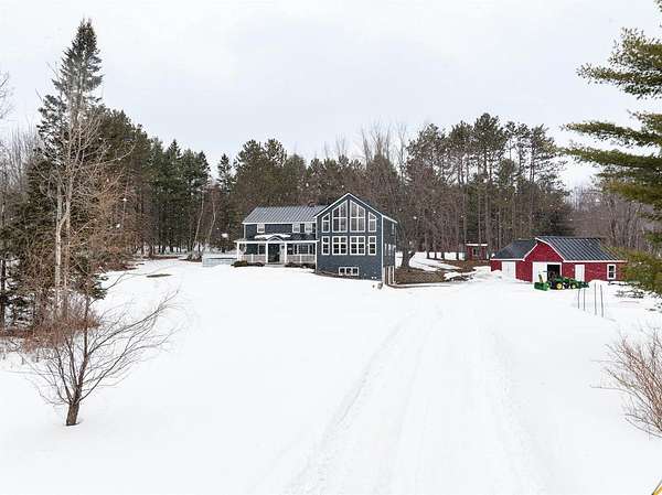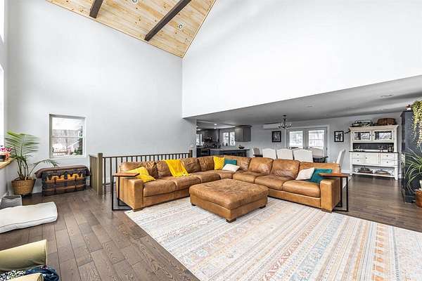 Hermon Showstopper! Set on 5.76 private acres, this 3,300 sq. ft. home offers 4 bedrooms, 2.5 bathrooms, and a perfect blend of modern design and warmth. The dramatic cathedral-ceiling great room features exposed beams and a wall of oversized windows, complemented by a sunroom, cozy den with woodstove, and a dedicated office. The updated kitchen showcases custom cabinetry, stainless steel appliances, wood floors, and an exposed brick accent wall. The primary suite is a lodge-like retreat with vaulted ceilings, exposed beams, and tongue-and-groove pine, with a walk-in closet featuring built-ins and an updated master bathroom with tiled shower and soaking tub. Outside, a storage barn and nearly six-acre lot offer endless possibilities for recreation, gardening, or enjoying Maine's serene setting. A rare Hermon property combining striking architecture, modern updates, and private acreage - just minutes from town and all three Hermon schools. Come see this stunning home and all it has to offer!