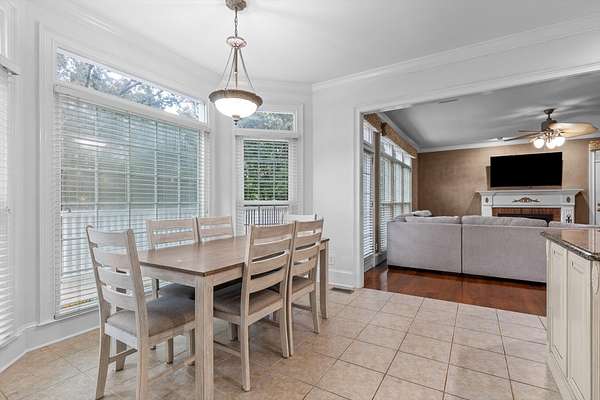 Inside, you'll find room for everyone and then some. The main level offers a warm and inviting living room with a wood-burning fireplace, a formal dining room, sitting room, and an eat-in kitchen with a cozy breakfast nook. Enjoy peaceful mornings on the covered side porch, or fire up the built-in grill on the spacious back deck--perfect for hosting family cookouts and gatherings.