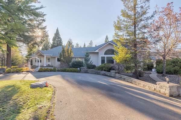 Set on 5.02 acres, this expansive estate offers luxury living, functional space, & true privacy approximately 15 minutes from downtown Grants Pass. The 4,220 sq ft home showcases quality craftsmanship with solid alder doors, cherry wood cabinetry, & granite countertops. The gourmet kitchen features Sub-Zero Refrigeration, walk-in pantry, & high-end appliances, opening to light-filled living areas. Large family room designed as a flexible bonus space is ideal for recreation, multi-purpose living, or gatherings. Primary suite offers heated tile floors, custom walk-in closet, & an oversized sitting room well suited for home gym or private retreat. This property shines with open usable acreage, fenced garden area, patios for entertaining, & room to enjoy the setting. The impressive 2,040 sq ft four-bay shop with full bath stands out as a major asset, offering exceptional space for storage, projects, or hobbies. A rare blend of privacy, space, & functionality with convenient access to town