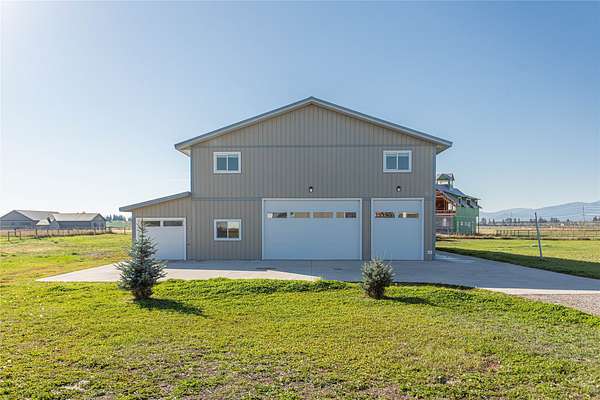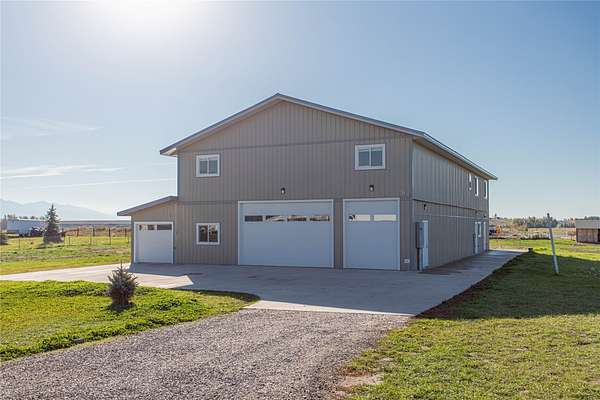 One of a kind barndominium situated on 4.03 acres just east of Kalispell with gorgeous countryside and mountain views. An ideal combination of residential living and commercial potential. The custom built 1,960 sq. ft. home is complemented by a massive 4,440 sq. ft. commercial-grade shop, perfect for business owners or hobbyists in need of extra space. Flexible layout allows for easy customization to suit your business or hobby needs. With radiant floor heating, three heat pumps, air-conditioning, and a backup wood-burning boiler, every corner of this property is designed for comfort and efficiency. Whether you're looking to expand your business or enjoy a spacious retreat, the possibilities are endless with this versatile property. Note: all photo property outlines and stated items in photos are approximate, are not exact and for reference only. See supplement. Feature list available. The building measures approx. 40'x80' plus there is a 10'x90' attached lean-to. The two-story residence and shop space combined totals approx. 6,400 sq ft. The living quarters boast 9' ceilings, beautiful kitchen with granite counter tops, a main floor guest bath, 4 bedrooms and 2 bathrooms upstairs. The shop bathroom has a toilet and it is rough-plumbed for a future sink. There is a large, finished open space for home expansion or business use with 80 lbs/sq inch beam load capacity. Currently, there are no road maintenances dues assessed for Katie Ray Lane but could be assessed in future. Information provided is from sources deemed to be reliable & accurate but not warranted by listing agent/office. It is subject to change without notice. All prospective purchasers & agents should check for accuracy of all statements contained herein to their own satisfaction.