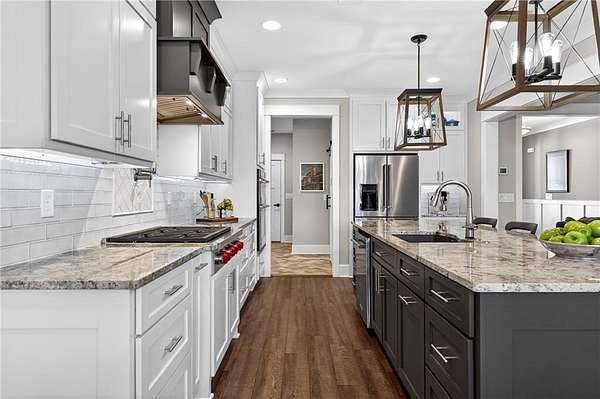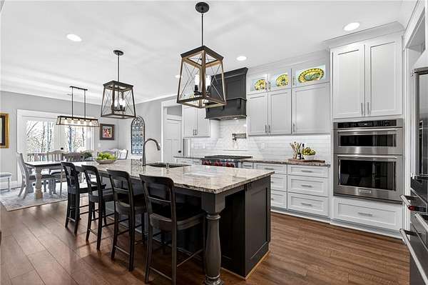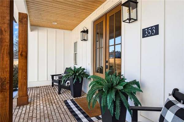 Blending rural calm with upscale sophistication, this NEW RANCH home is sited on 3 private acres with a 40' X 50' RV garage/workshop and is conveniently located between Milton/Alpharetta, Ball Ground, Canton and Cumming, adjacent to Hawk's Ridge, one of the most prestigious golf communities in north Georgia. Built in 2023 with thoughtful and practical touches. The chef approved kitchen features a 6 burner Wolf(r) cooktop, pot filler, expansive granite counters and a large walk in pantry. Vaulted and beamed family room grants access to an oversized fireside screened porch overlooking the privacy of wooded acreage. Full daylight basement is finished with an additional bedroom, bath, office and recreation area. CAR ENTHUSIASTS will appreciate the oversized 3 car garage at the house and the additional 2,000 sf RV garage/workshop that easily holds car lifts and/or large RV. Generac 24KW whole house propane generator. Other notable features include unfinished room above garage and plenty of storage area in basement. POOL READY as septic is on left side of home. No HOA, although this property is on one of 4 lots on a private easement drive with a shared maintenance agreement. Enjoy Cherokee County's low taxes and excellent schools. See uploaded feature sheet for more construction details. PLEASE NOTE: UNREPRESENTED BUYERS WILL BE REQUESTED TO SHOW PRE-APPROVAL/QUALIFICATION AND IDENTIFICATION PRIOR TO APPOINTMENT.