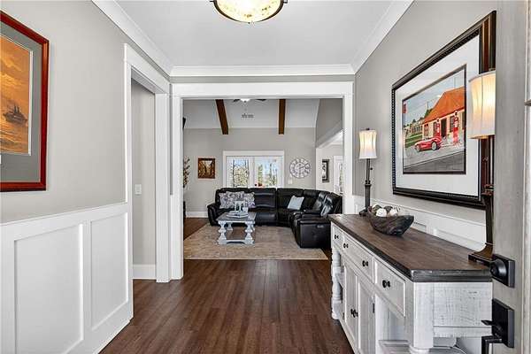- Beamed Ceilings, Crown Molding, Double Vanity, Entrance Foyer, High Ceilings 10 ft Main, High Speed Internet, Walk-In Closet(s)