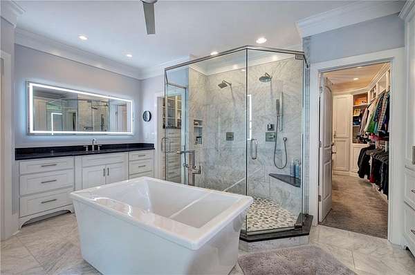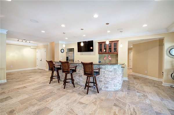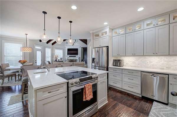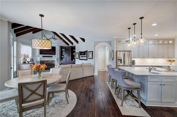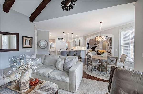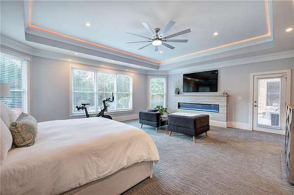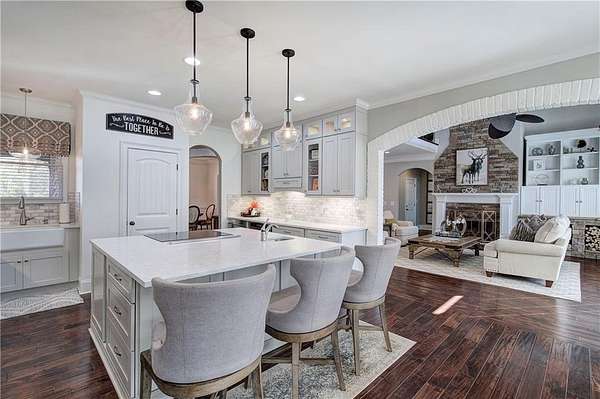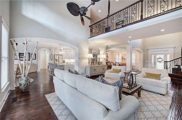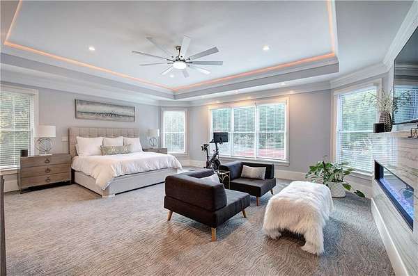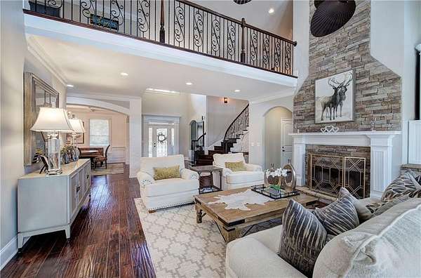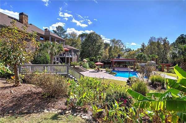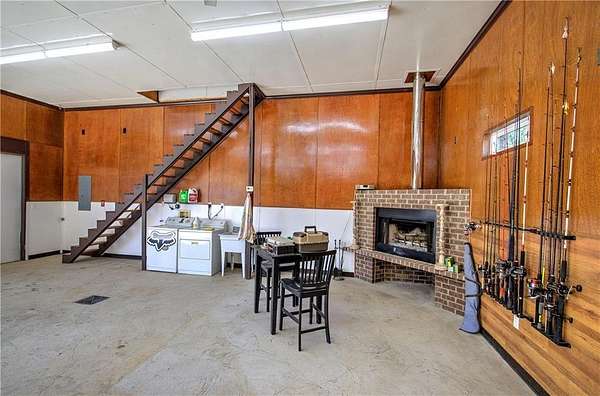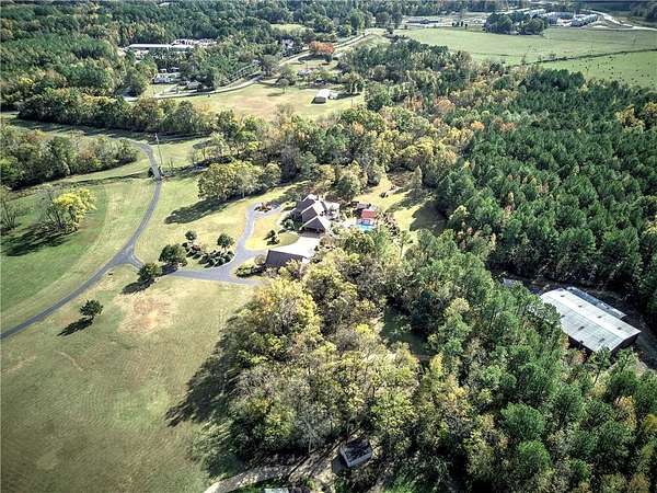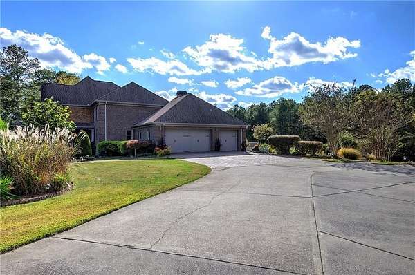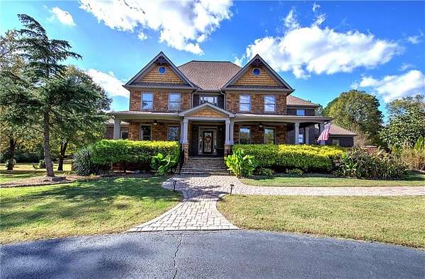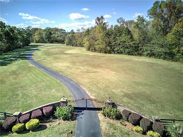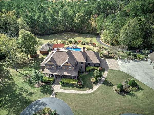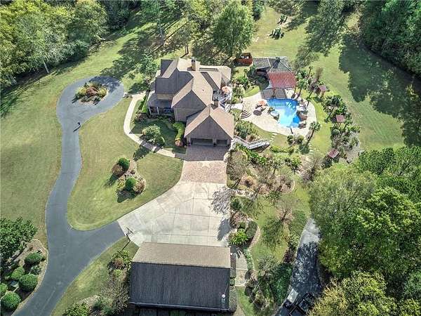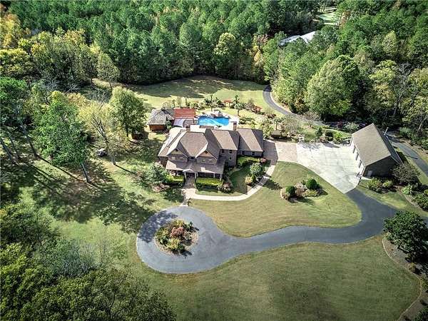 Experience luxury living at its finest in this stunning 5-bedroom, 4 full bath, and a half bath estate with beautifully designed space. Tucked behind a private gated entrance and surrounded by lush, manicured landscaping, this property delivers an unmatched sense of privacy and resort-style living complete with an in-ground pool, covered pavilion, expansive deck, and multiple garages perfect for work, hobbies, or storage. Step inside the grand two-story foyer, where gleaming hardwood floors lead you to the elegant dining room with a coffered ceiling, private office, and an impressive two-story family room showcasing a stone wood-burning fireplace. The open layout continues into the breakfast area and gourmet kitchen, featuring a massive granite island, tile backsplash, stainless steel appliances, and a seamless view into the inviting living room with exposed wooden beams for added warmth and character. The main-level primary suite serves as a true retreat, offering tray ceilings, an electric fireplace with a cozy sitting area, direct access to the back deck, and a spa-inspired bathroom. Enjoy a tiled shower, separate grand soaking tub, dual vanities, and an oversized custom closets complete with built-ins and an island for exceptional organization. A half bath and mud/laundry room complete the main floor. Upstairs, you'll find four additional bedrooms-each with unique charm-along with two full bathrooms. The terrace level offers even more room to live, work, and entertain with a second kitchen, media room, exercise room, abundant storage, and walk-out access to the backyard oasis. Outdoors, the covered back deck overlooks your private paradise: a sparkling pool, hot tub, covered poolside pavilion, and stunning landscaping ideal for hosting family and friends. Car enthusiasts, hobbyists, or business owners will love the attached 3-car garage a detached 4-car garage, plus a massive ~7,500 sq ft heated/cooled garage/workshop with room for multiple vehicles, equipment, or specialized use. This extraordinary property offers luxury, privacy, and versatility at every turn-truly a rare opportunity to own a one-of-a-kind estate.