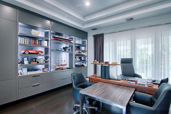The residence boasts 10,500 total square feet, with five bedrooms, five full bathrooms and 2 half bathrooms. There are two large home offices with custom built-in bookcases. One office has a full bath and can be repurposed as the 6th bedroom. The other office contains a half bath. As you walk from room to room you will say wow.
