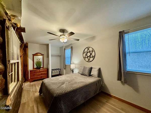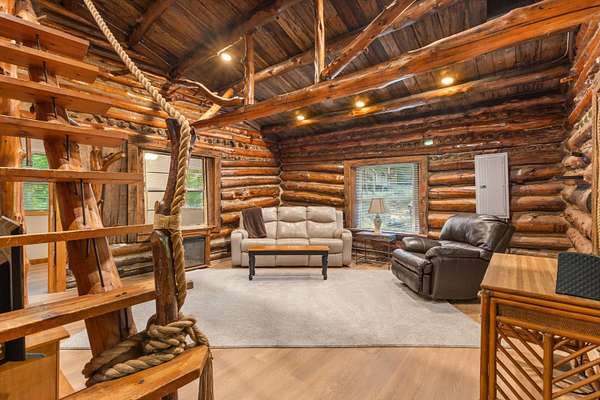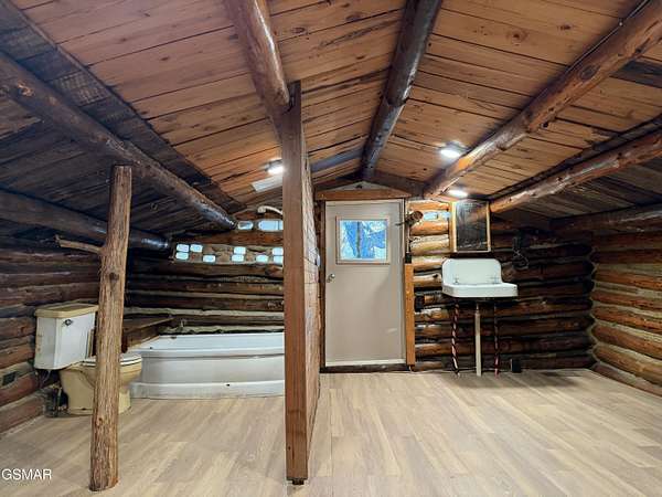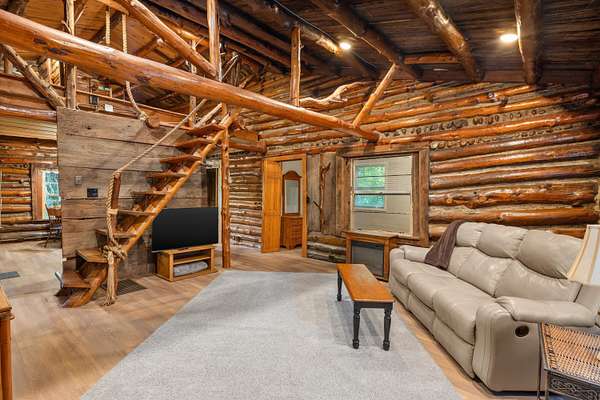 Rare opportunity to own 4.4 acres of private Douglas Lake frontage priced near land value - with a charming log cabin and an incredible detached garage with finished bonus space already in place. Whether you're dreaming of creating your ideal lake retreat, updating a rustic cabin, or building a custom lakefront home, this property offers endless potential in a peaceful natural setting. Tucked away at the end of a winding, tree-lined driveway, the home sits surrounded by mature hardwoods that provide exceptional privacy and a true Smoky Mountain feel. Enjoy lake views from the covered front porch of the cabin or from the expansive deck above the garage, perfect for relaxing, entertaining, or soaking in the quiet beauty of the cove. The property features approximately 86 feet of Douglas Lake frontage located in a protected private cove just off the main channel near McGuire Creek - ideal for kayaking, fishing, swimming and enjoying lake life. Recent upgrades include a new HVAC system in cabin, upgraded electrical panel,, fresh flooring throughout much of the home, updated lighting, water softener system, new garage door with remote and keypad and a beautifully finished 16' x 24' room above the garage complete with mini-split, new flooring, paint, and lighting - perfect for guests, a studio, office, or recreation space. Additional detached storage shed conveys. A unique lakefront property offering acreage, privacy, improvements, and future potential at a price rarely seen on Douglas Lake.