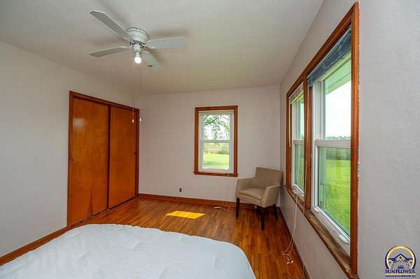 Nestled on 16 acres with the convenience of highway frontage, this 3-bedroom, 2-bath home offers a rare combination of space, location, and opportunity. Inside, you'll find hardwood floors, an inviting living room with built-in shelving, and an upstairs laundry room for convenience. Several key updates have already been completed, including newer windows, an HVAC system installed just 5 years ago, a water heater replaced 4 years ago, and roofs on the home and all outbuildings replaced 7 years ago. The property is well-equipped with multiple outbuildings, highlighted by a massive 90x50 shop/garage, plus a detached 2-car garage, providing endless possibilities for hobbies, storage, or home-based projects. With plenty of room to spread out, enjoy country living just minutes from Pomona Lake and Melvern Lake. This home is ready for your personal touch to bring out its full potential and make it truly your own.