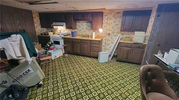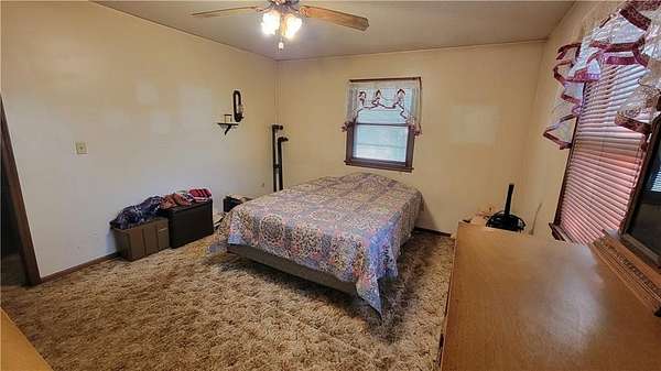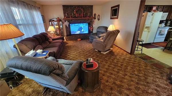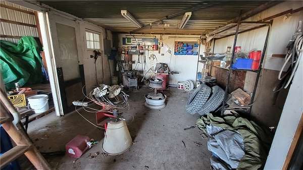 Ready to move to the country? With 5 acres +/-, this 3 bedroom, 2 full bathroom ranch is a great place to start! It is being sold as is, but the sweat equity in this all-brick front home is abundant. Spacious kitchen with lots of cabinet space, an island and all appliances provided. Large living room with a brick, wood burning fireplace. The basement has 3 ways to gain access - one is through the garage, one is from the outside and one is a spiral staircase from the living room. The downstairs also features a second kitchen and a second laundry room, great for guests! When you walk out the back door, you will see the large 30'x18' concrete patio, great for entertaining or enjoying morning coffee. Keep going and head out to the 48'x40' shop 12'x10' southside. The shop is divided down the middle with concrete floors throughout 12'x14' heated and has lots of storage up on the mezzanine and in the parts room. The other side of the shop has a separate room divided 12'x10' also with lots of mezzanine storage. There is also a 32'x27' lean-to shed for equipment storage or would be great for livestock. Come take a look at this property, it's on blacktop!