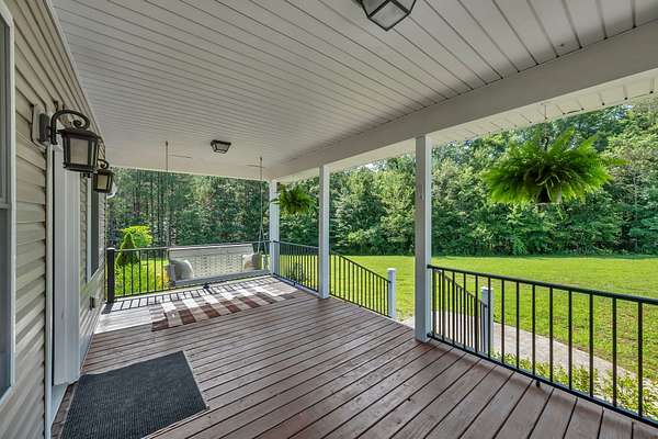 Step outside to an expansive covered deck with vaulted ceilings and recessed lighting, ideal for entertaining or enjoying peaceful evenings. The home showcases fine craftsmanship, featuring custom wood cabinetry and intricate millwork with wide hallways. A large laundry and mudroom area adds to the convenience and functionality of this home. The hardwood stairs also lead up to a bonus room and down to the walkout basement with additional rooms and a den. Poured concrete foundation walls. Water filter. The property is a haven for outdoor enthusiasts, complete with multiple outbuildings, a garden shed, and a thriving garden spot. Savor the fruits of your orchard with 3 peach trees, 5 apple trees, 3 pear trees, and 2 elderberry trees, alongside a small vineyard featuring Concord grapes and muscadines. Trail leading to an out-of-sight outbuilding. Electric RV hookup. With no HOA restrictions, this property provides the freedom to create your dream lifestyle. Nice level road frontage spot for business-minded folks. Embrace country living with modern comforts in this home, perfect for those seeking space, privacy, and natural beauty.