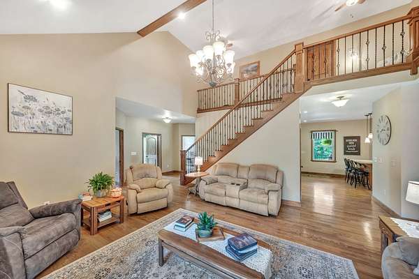 Nestled on 12 serene acres between Summertown and Hohenwald, this builder's custom home offers a perfect blend of luxury and rural charm. Featuring elegant hardwood flooring, this residence boasts spacious rooms, including a generous dining area and a vaulted great room.