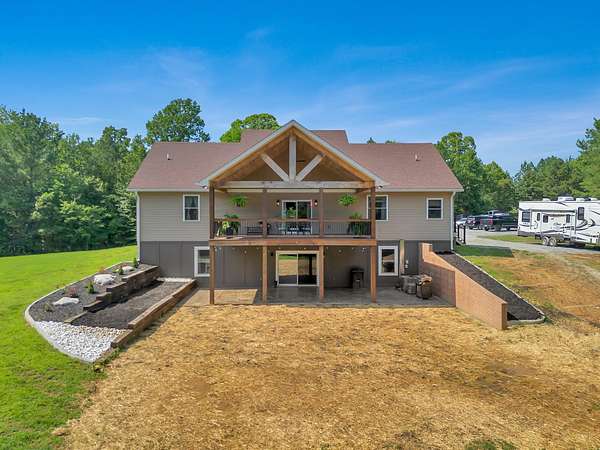 Nestled on 12 serene acres between Summertown and Hohenwald, this builder's custom home offers a perfect blend of luxury and rural charm. Featuring elegant hardwood flooring, this residence boasts spacious rooms, including a generous dining area and a vaulted great room. Step outside to an expansive covered deck with vaulted ceilings and recessed lighting, ideal for entertaining or enjoying peaceful evenings. The home showcases fine craftsmanship, featuring custom wood cabinetry and intricate millwork with wide hallways. A large laundry and mudroom area adds to the convenience and functionality of this home. The hardwood stairs also lead up to a bonus room and down to the walkout basement with additional rooms and a den. Poured concrete foundation walls. Water filter. The property is a haven for outdoor enthusiasts, complete with multiple outbuildings, a garden shed, and a thriving garden spot. Savor the fruits of your orchard with 3 peach trees, 5 apple trees, 3 pear trees, and 2 elderberry trees, alongside a small vineyard featuring Concord grapes and muscadines. Trail leading to an out-of-sight outbuilding. Electric RV hookup. With no HOA restrictions, this property provides the freedom to create your dream lifestyle. Nice level road frontage spot for business-minded folks. Embrace country living with modern comforts in this home, perfect for those seeking space, privacy, and natural beauty.