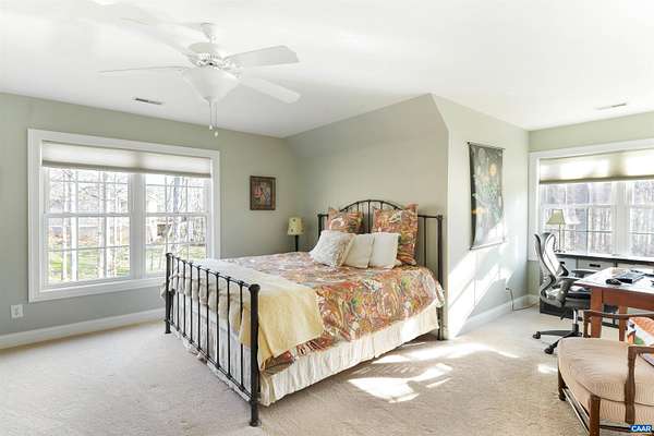 Don't miss out on this impeccably maintained home, 3,887 finished Square Feet in ALBEMARLE county with LAND, 2.21 acres. Minutes from Target, HT, NGIC, and future AstraZeneca. Easy access to downtown C-ville via Rt 29 or Rt. 20 if you prefer the more scenic route. Exceptional home to entertain in or enjoy the peaceful wooded, neighborhood of Foxwood Forest. Enjoy the bluestone front porch overlooking the nearly level, professionally landscaped front yard or the composite deck in the back. Family room and eat in kitchen at the back with two sided fireplace. Granite countertops in kitchen that are a piece of art. On the second floor find 4 bedrooms, 2 with en-suites and a Jack and Jill bath for the remaining 2. Large closets in all rooms. Finished terrace level with 10' ceilings, wet bar and porcelain tile floors that walk out to a magnificent, covered bluestone patio that leads you via lit path to the family fire pit. Lutron Caseta smart light system, wired speakers, Fiber optic internet, cat 5e wired home and invisible fence. Many updates (see info in docs) and a great walking/biking neighborhood or easy access in minutes to Preddy Creek Trails with 571 acre recreational area for hiking, mountain biking and equestrian riding.