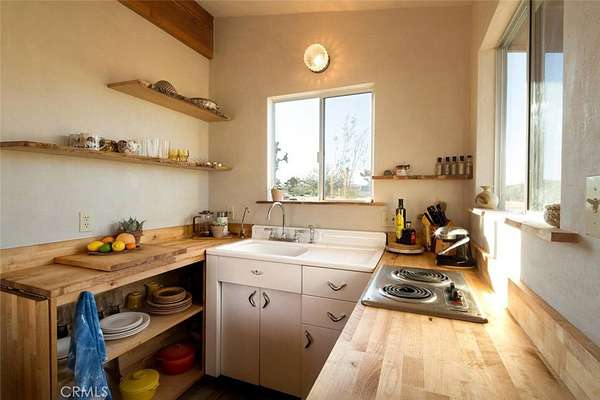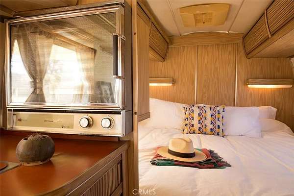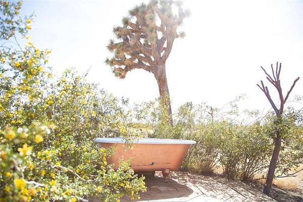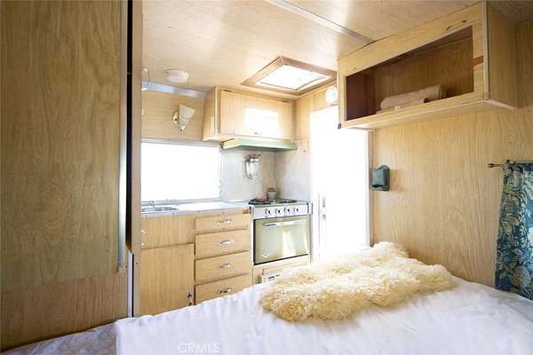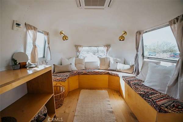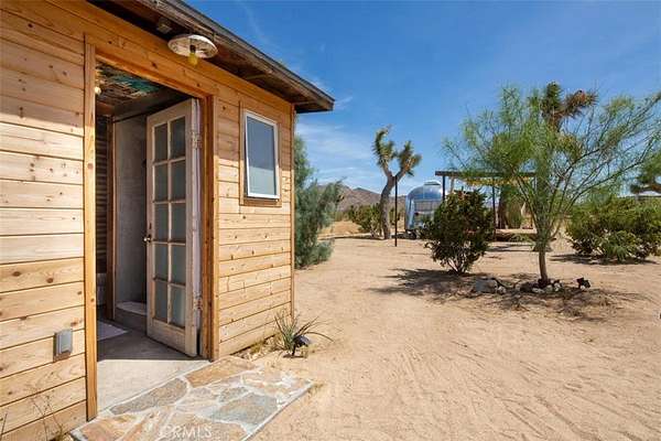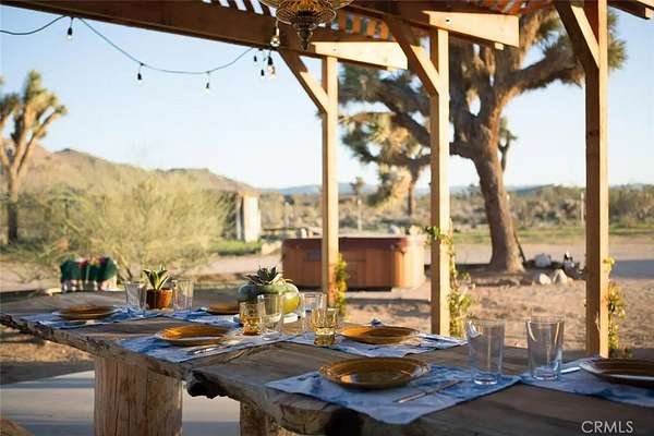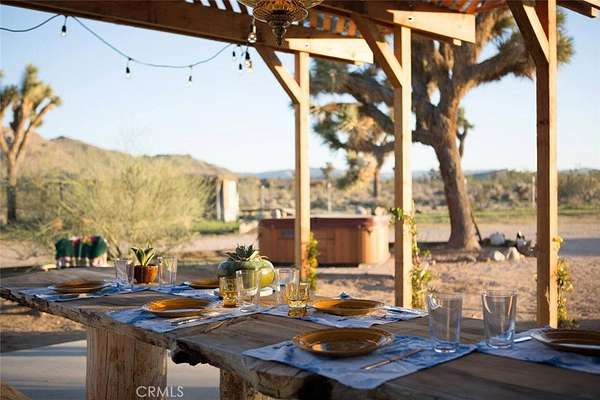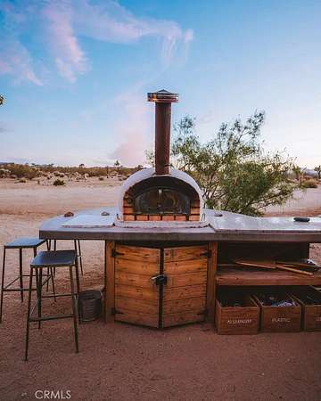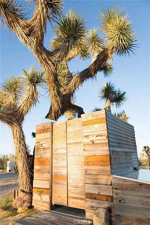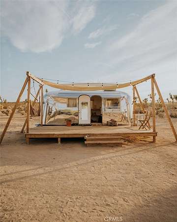 Discover vintage allure and modern luxury at your own haven in Joshua Tree, California. This lovely small home features flexible, indoor and outdoor living. The interior features 1 bedroom and 1 bathroom and a cozy kitchen space and high ceilings, and mini split unit for heating and air conditioning. The Exterior is expansive, kitchen with pizza oven and BBQ, showers, and auxiliary bathroom/ laundry building. The Full 10 Acres are fenced in with automatic main gate and 3 other access gates. Relax in the spa, take a dip in cold plunges, and enjoy solace amid the breathtaking scenery. Dine under the stars in on the patio, savoring meals with friends while surrounded by the vast desert sky. As the sun sets, witness the desert's diurnal life—quail, dove, jack rabbits stir under LARGE iconic Joshua trees. Joshua Tree Acres is Nestled on 10 acres of desert landscape, two vintage and two meticulously restored Airstreams and a Vintage Shasta offer a unique blend of charming, and comfortable way *rough it*Situated in Joshua Tree's enchanting landscape, your new home provides front-row seats to stunning sunsets and star-studded nights. This unique energy defines you every moment. Escape the ordinary and embrace the extraordinary, a journey into vintage inspired luxury, natural wonder, and inner peace. Includes all 6 Trailers and Furnishings. New 400 Amp panel