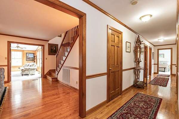 Gorgeous home in Creek Bluff on Occohannock Creek (Chesapeake Bay side of Virginia's Eastern Shore). Custom built by Tommy Arnold (1995) and meticulously maintained by the original owner. Updated kitchen with granite countertops and stainless appliances, beautiful hardwood floors, and a stunning renovated primary suite. Main level offers 4 bedrooms plus a study and large bonus room with full bath upstairs. (could be a guest suite) 4BR/3.5BA. Bright custom sunroom with serene views of landscaped grounds by Browder Hite. Large deck overlooking the back yard. Cute outbuilding. for additional storage or projects. Ample storage with walk-up attic and 2-car garage. Convenient central Shore location near shopping, hospital, and local attractions. You have to come see it in person.