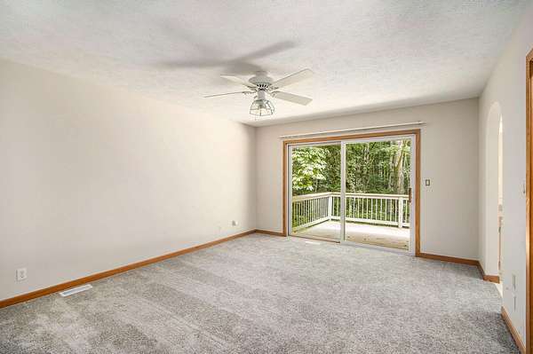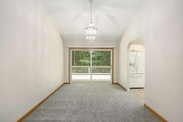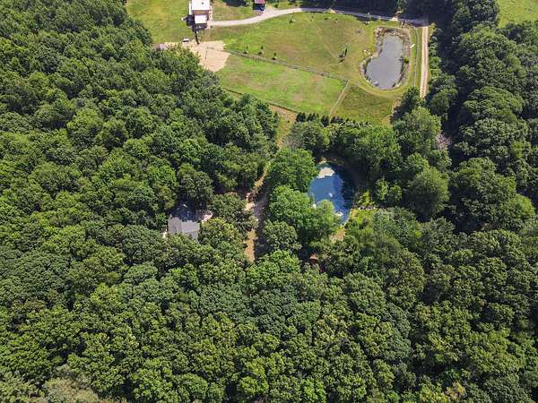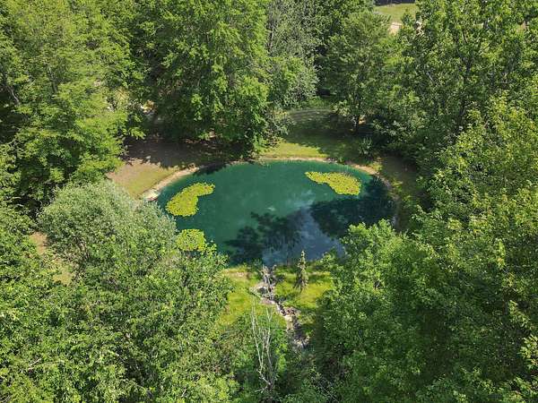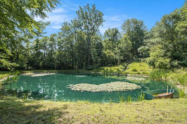 Tucked away at the end of a quiet, private road, this secluded 3,200 sq. ft. ranch home offers nearly 10 acres of serene natural beauty and valuable frontage on the peaceful, no-wake Little John Lake. The lakefront currently features a natural shoreline with a bit of marshland, providing a blank canvas for your ideal lakeside getaway-whether it's a cozy boat launch, quiet fishing spot, or charming dock to kayak and enjoy stunning sunsets. Start your mornings surrounded by abundant wildlife, including deer and wild turkey, in a true sanctuary of peace and privacy. One of the property's highlights is the tranquil pond, partially landscaped with a cascading waterfall that serves as a soothing centerpiece, while koi and catfish swim beneath. Inside, the spacious 3-bedroom, 4-bath home has been thoughtfully updated with fresh paint and new flooring throughout much of the main living area. The main floor features a comfortable master suite, formal dining room, and a chef's kitchen with a large center island, prep sink, and plenty of cabinetry perfect for family meals or entertaining. Vaulted ceilings and expansive windows in the living room bring in natural light and showcase calming views of the pond and waterfall. The full-length deck accessible from the main floor provides ample space to relax or host gatherings with nature all around. The walkout lower level expands your living space with a large family room, a second gas log fireplace, and a versatile bonus room ideal for hobbies, crafts, or other uses. Additional features include a dependable Guardian generator for peace of mind and a massive 30x50 insulated outbuilding with a heated 20x30 workshop and rough plumbing for a bath ready to accommodate your projects, storage, or recreational needs. This property offers a rare combination of comfort, privacy, and natural beauty with the added bonus of lake access to create your perfect retreat.