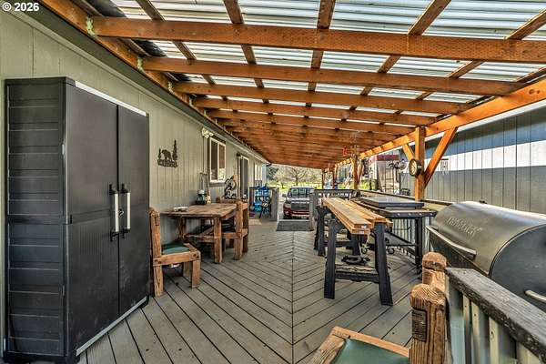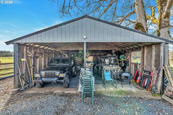 - Barn, Builtin Hot Tub, Covered Deck, Garden, RV Boat Storage, RV Hookup, RV Parking, Raised Beds, Second Garage, Tool Shed, Yard