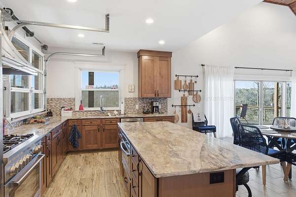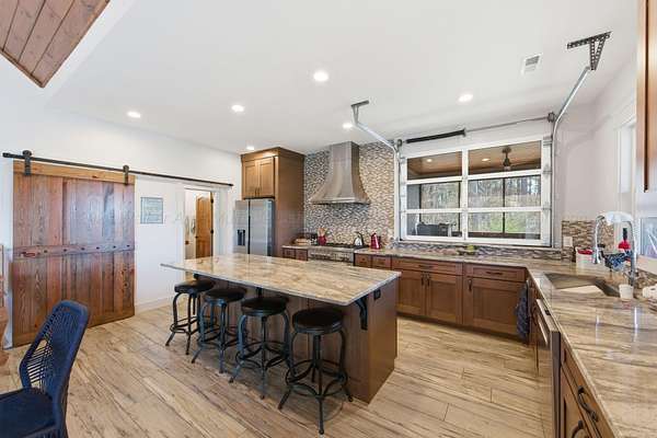 Est $6,412/moSmith Lake (Crooked Creek) A fantastic custom build situated on 2.7 acres. On the property is a 1200 sq foot detached shop with floored upper loft. A very unique glass roll up door in the kitchen allows you to serve your guests on the lakeside porch. A one of a kind property in complete privacy! You will be amazed at the views and the excellent construction quality. Year rnd water and big views!