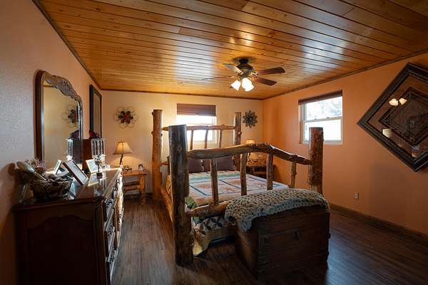 Set on 86 expansive acres, this 4-bedroom, 2-bathroom home offers the perfect balance of wide-open space, privacy, and convenience. Surrounded by mature trees and sweeping views of the surrounding mountain ranges, the setting is peaceful and scenic, ideal for those seeking true Southern Colorado living.