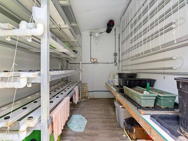 There is a detached 30x30 2-stall fully insulated garage, with a potential living area in the front. There is also a free standing hydroponics grow shed for growing produce in a very efficient manor.