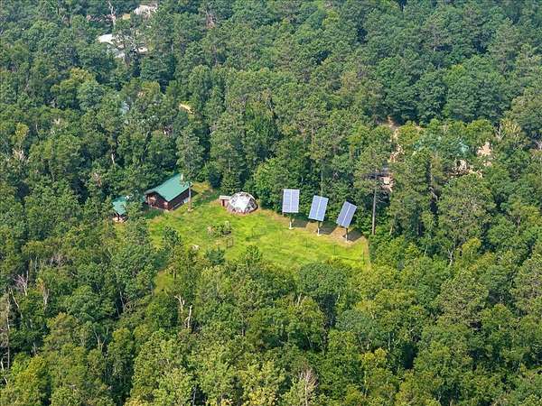 In the back of the property you will find a beautiful studio/guest cabin, green house, large fenced garden, solar panels, and open air storage shed.