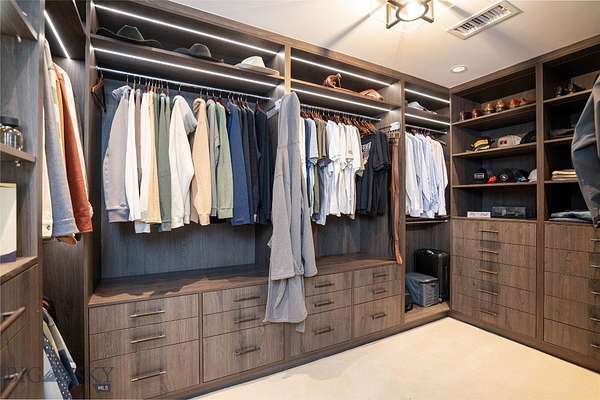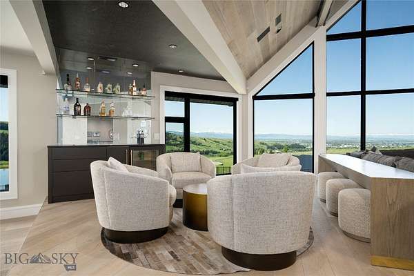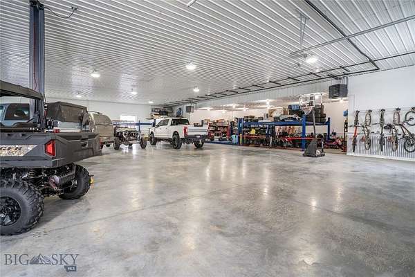 This exceptional 36.375-acre estate blends modern luxury with Montana's breathtaking landscape, just over 4 miles from downtown Bozeman. The newly remodeled 9,787 sq. ft. residence, originally built in 1989 and transformed in 2022 by NVS Architects and Villa Homes, features seven bedrooms, four and a half bathrooms, and sophisticated, thoughtful design throughout. Expansive living spaces include a state-of-the-art kitchen, theater room, gym, bonus room, dedicated dog room with outdoor access and a stunning outdoor area with a covered patio, outdoor kitchen, firepit, and astroturf dog run. The main level is anchored by a vaulted great room with expansive windows framing mountain views, a gas fireplace, and a Restoration Hardware chandelier. The kitchen is a showpiece, outfitted with high-end BlueStar appliances, a large island, and a hidden prep kitchen with Miele and True appliances-perfect for seamless entertaining. The stunning main level primary suite includes spa bath, dual walk-in closets and a private office with covered patio. The lower level offers four bedrooms, two bathrooms, a large family room with a gas fireplace, and walk-out access to a private patio and playground, creating an ideal space for guests or multigenerational living. The upper level of the home features a large media room with wet bar, two bedrooms, 3/4 bath and bonus room. Designed for year-round enjoyment, the outdoor areas seamlessly combine beauty and function. A warm mahogany deck provides a front-row seat to the mountains, while radiant heat in the surrounding tile ensures snow-free patios and walkways in winter. A 1.25-acre pond, greenhouse, heated driveways, a whole-home generator, and three gated entries with paved driveways enhance comfort and security. The 10,400 sq. ft. shop and showroom-fully redesigned in 2022-is a dream space for collectors, hobbyists, or business use. The shop features five car lifts, two gas heaters, and a dedicated workroom with a powder bath. The adjoining showroom offers an epoxy-finished floor, three stylish offices, a kitchenette, and an additional powder bath-ideal for professional operations, meetings, or displaying prized collections. With direct access to National Forest and the M Trailhead, this rare property offers the ultimate Montana lifestyle-private, convenient, and built for both adventure and elegance.