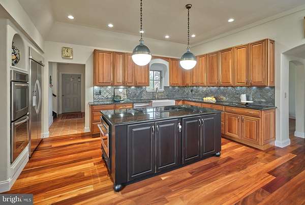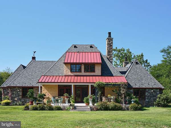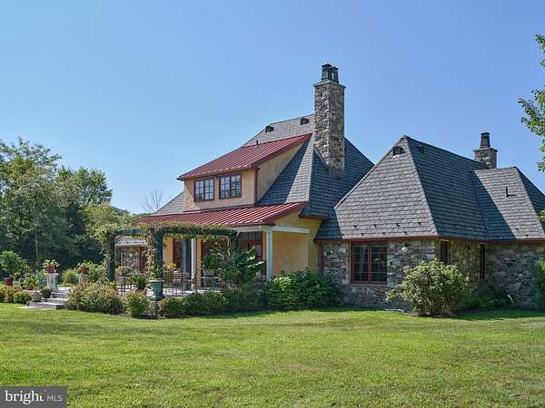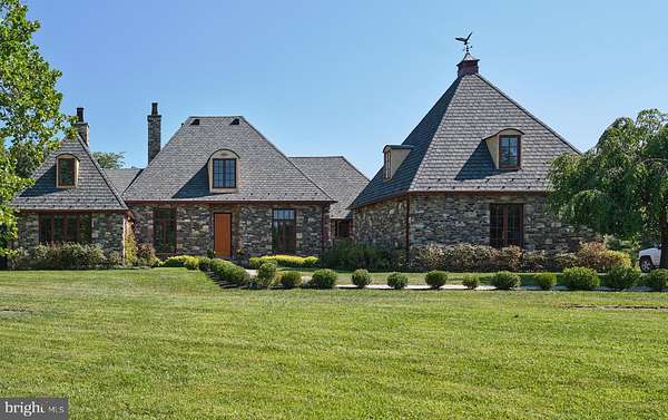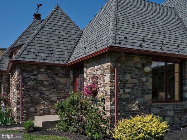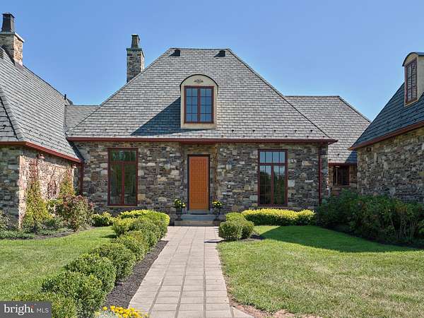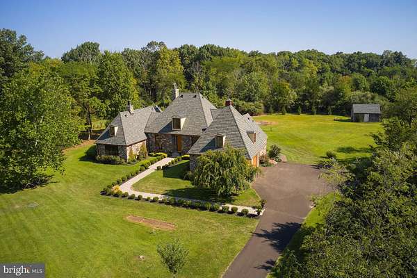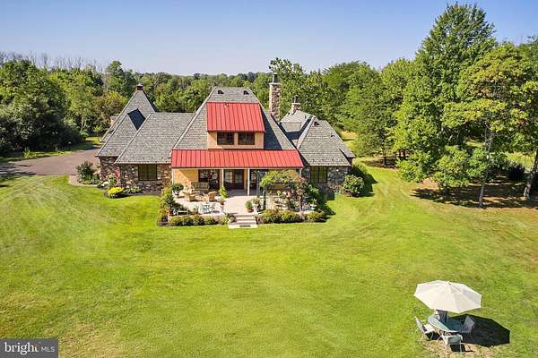 Within the peaceful countryside of Tinicum Township, is Barnstone, a stone manor house that reflects the architectural aesthetic of French country at its best. Designed by architect Jack Arnold of Homes of Elegance, this luxury home was crafted for graceful living. Built of stone from a 150-year-old barn that once stood on the original farmstead, the home has a recent roof with a transferable 50-year warranty. The interior of the home has a logical floor plan that moves from the front foyer to the ample-sized dining room on the right and then straight back to the oversized Great Room, which has a wood-burning fireplace, extra wide crown moldings and a bar with wine refrigeration. A wall of glass doors is ideal for displaying the large entertainment patio beyond the open yard. The eat-in kitchen contains Ukrainian blue mica granite countertops, custom cabinetry and a chef's appliance package. There is a large pantry, powder room, and staircase to the au pair bedroom. The main floor contains a reading nook overlooking the front lawn and the primary bedroom with a sumptuous bathroom. Just down the hall is the den/library for your entertainment and a second powder room is sensibly located. The second floor has two family or guest bedrooms with two bathrooms. The large basement is ready to be converted to a theater room, gym, or whatever your imagination conjures. Barnstone is a refreshing change from the typical center hall colonial that is so plentiful in today's market. Let your vision drift to the French countryside which will prepare you for an invigorating visit. Within walking distance of Tinicum Park pickle ball, basketball and tennis courts and park swimming pool and hiking trails.