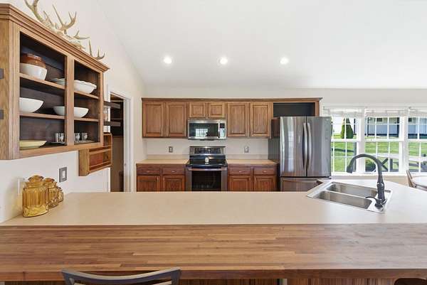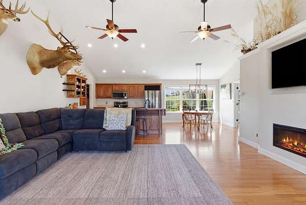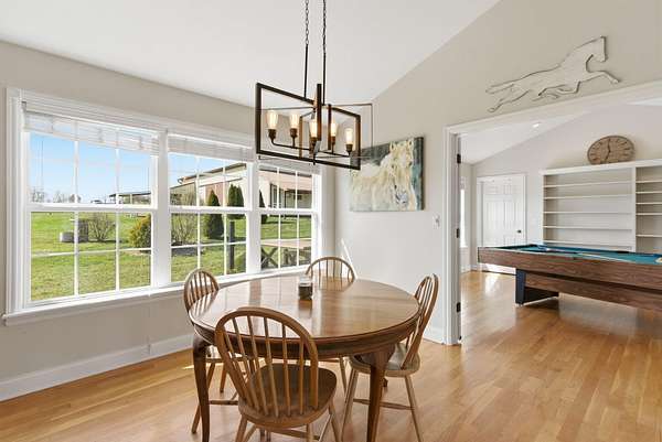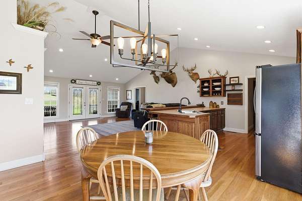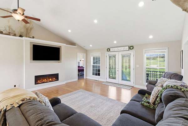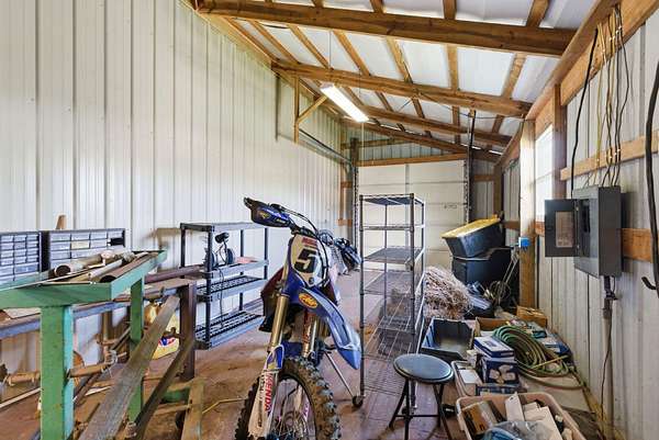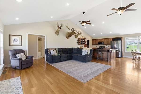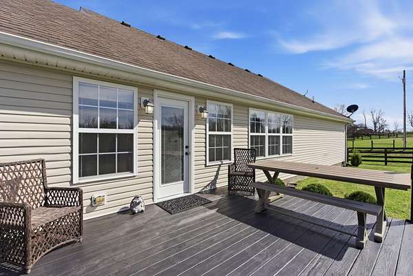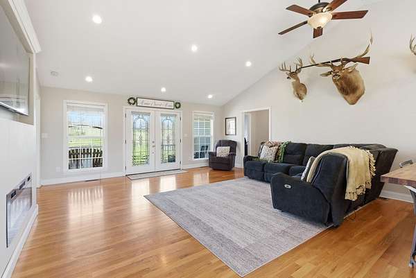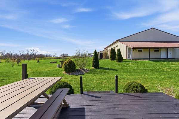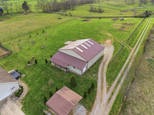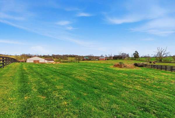 Million-dollar views and wide open Bluegrass skies set the stage for this well-built ranch home on beautiful acreage. Framed by classic four-board fencing, the property offers comfort, functionality, and country lifestyle. A thoughtfully designed split-bedroom layout features spacious rooms, including a private primary suite and two secondary bedrooms connected by a Jack-and-Jill bath. Hardwood floors run throughout the main living areas, and luxury vinyl plank complete the home for a carpet free home. The kitchen offers excellent storage with a large pantry, functional space and a beautiful custom peninsula. An additional flex space just off the kitchen provides versatility as a formal dining room, home office, or playroom. Outdoor enthusiasts and hobbyists will appreciate the impressive 50' x 50' metal barn, complete with tack room, hay storage, and a third garage bay-ideal for equipment, workshop space, or equestrian use. Additional highlights include a two-car attached garage that is insulated and equipped with a mini-split system, making it comfortable year-round. Major updates include a newer roof and HVAC system for added peace of mind. This farm is conveniently located just off Highway 227, offering an easy commute to Georgetown while still enjoying the tranquility and views that make country living so special.