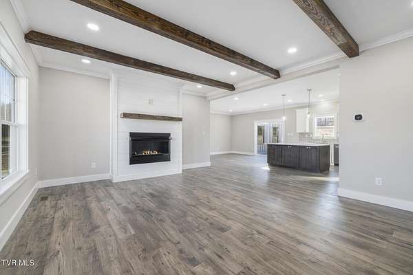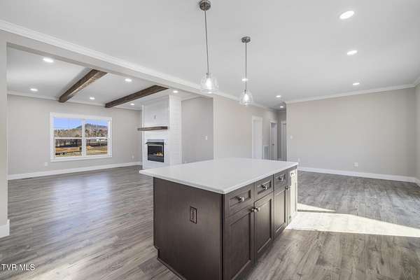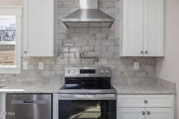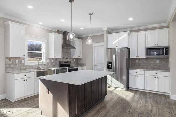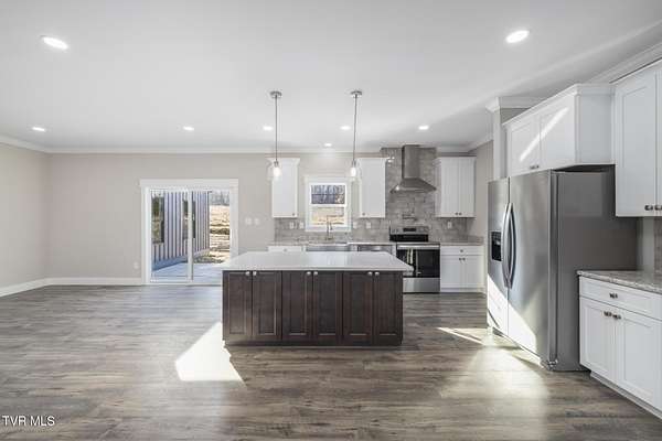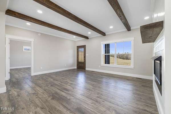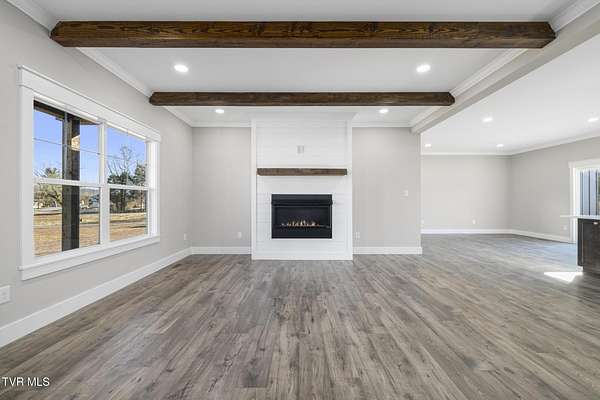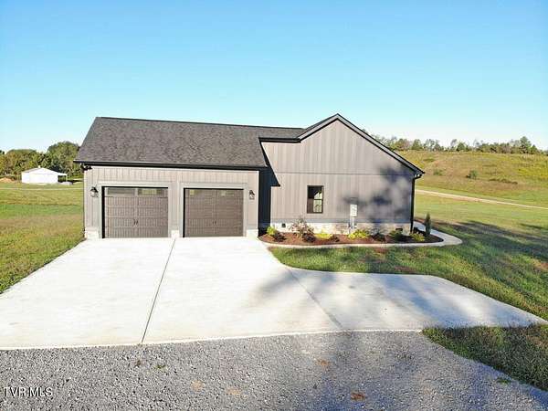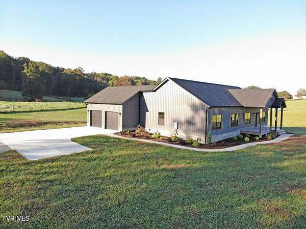 The model home in White Top Meadows Subdivision is now available. This Ranch Style home on 2.2 acres of level land features upgrades highlighting CustomSmart Homes' expertise. The open floor plan flows seamlessly between living room, kitchen, and dining area-perfect for daily life and entertaining. The kitchen boasts a quartz-topped island, walk-in pantry, Energy Star appliances, and a pot filler over the range. Exposed wood beams warm the living room, where a gas fireplace with stained mantel and shiplap wall creates a cozy focal point. The airy primary suite offers double windows and a transom for natural light, plus a walk-in closet with wood shelving and cubbies. Its luxurious bath includes dual granite vanities, deep drawers, linen cabinet, walk-in shower, and private water closet. Two additional bedrooms share a full bath with soaking tub/shower for family or guests. The laundry/mudroom provides a cubby bench, coat hooks, granite utility sink, washer/dryer hookups, and shelving, connecting to the attached 24' x 24' garage with double doors and concrete parking pad. Relax on the rear concrete patio overlooking green pastures, woods, and barns. The adjacent Lot 11 (18 acres) is also for sale, ideal for homesteading or an extra family home. Off Highway 394, White Top Meadows offers easy access to Bristol and Johnson City shops, dining, and services. Lots range from 0.8 to 18 acres for recreation, hobbies, or gardening-no HOA, minimal restrictions. Look for the sign at the entrance.