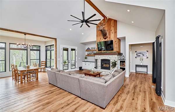 This is the home you’ve been waiting for—a rare blend of luxury, space, and resort-style living that seamlessly blends indoor and outdoor living into one incredible space on 2.73 wooded cul de sac acres with lake view (on shared lake). Featuring 5 bedrooms and 3 full and 2 (1/2 baths)-This home offers soaring ceilings, tons of windows and the the custom kitchen showcases granite countertops, center island/breakfast bar, butler pantry, high-end cabinetry, and seamless design that extends throughout the home. Stunner of a great room with stone wood burning fireplace and walks out to vaulted screened in porch-vault in the inverted vault in main living area-shiplap in dining area, foyer, master bath and dog room in basement-barnwood in dining area and finished basement-Your primary suite is a true retreat, a large luxury bathroom with dual sinks, walk in closet, separate tub and shower-stairs to the finished walkout basement feature motion lights and The finished basement adds exceptional flexibility with a kitchenette/bar area with live edge bar tops, 2 more bedrooms, full bath and a half , rec room great for pool table area, storage, built-in safe room, dog area under steps. Step outside to your private retreat featuring perfect area for inground pool-all this plus 3 car o/s side entry garage that is trimmed, insulated, and heated plus aggregate driveway, stamped concrete porch-400 amp service- With spacious living areas, premium upgrades, and thoughtfully designed indoor and outdoor spaces, this home delivers both comfort and functionality. Every detail has been accounted for!