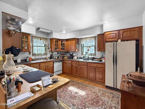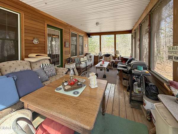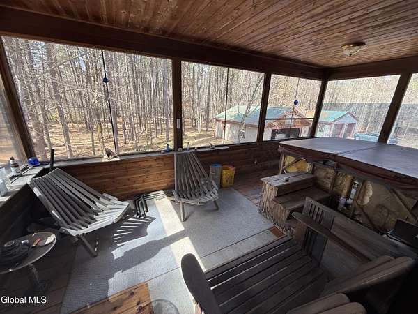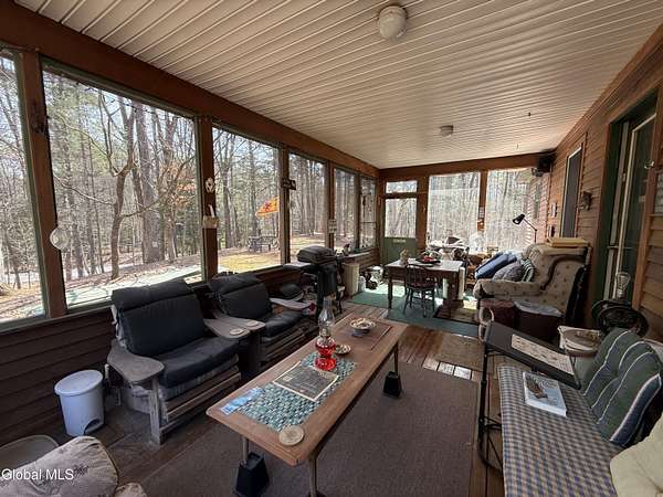 This property provides a rare investor opportunity and is being offered thousands of dollars below market value. The sale is subject to a life estate, meaning the Seller will retain the right to occupy and maintain the property -- including payment of taxes and insurance -- until his passing. Upon that time, possession will transfer to the buyer. Spectacular rustic home on 5.83 treed acres in the Schuylerville School District. Nestled perfectly on a knoll within a serene 5.83-acre wooded parcel offering privacy, comfort, and endless charm. Two spacious two car garages provide abundant room for vehicles, storage, and workshop space. Underground 200-amp electrical service to the house and an electrical subpanel in the garage. The front of the home features an inviting open concept living and dining area with attractive wood flooring and warm natural light. From the living room, step out onto the large screened front porch -- ideal for relaxing, grilling, or birdwatching in total tranquility. At the back of the main level are two generously sized bedrooms, including one with private access to its own screened upper-level porch, offering peaceful views of the treed backyard. The lower level includes a convenient kitchenette, washer/dryer area, and two additional bedrooms -- each with full-sized above-grade windows providing natural light. Trails wind through the wooded back area, perfect for leisurely walks or outdoor adventure. Viewings by appointment only and please do not drive up the driveway unless it is for a confirmed appointment.