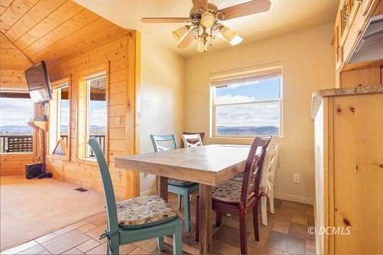 Elk Ridge Estates Unit 3 Cabin-Incredible Ridge Top Views of Paunsaugunt Pink Cliffs. 5.84 acres of Mountain Charm. One level 2,118 sq ft home with 3 beds and 2 baths. Living area has window wall to the spectacular scenery beyond. Kitchen and adjoining dining area provide roomy space for entertaining. Granite counter tops, tile and carpet flooring. Wood burning fireplace and electric heat. Ceiling fans through out. Neat, clean & comfortable. Framed in Pine & Oak. Two car attached garage with remote openers. Exterior is half log wood and rock - outside amenities water feature, firepit & benches. Elk Ridge is a wonderful area with lots measured in acres providing privacy for family & friends. Enjoy Southern Utah's finest ATV & snowmobile trails as well as the finest parks in the country. Elk Ridge has tar roads.