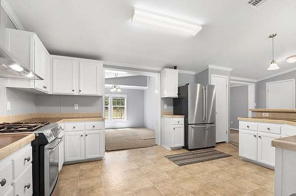 Work, play, and country living all in one! Set on 10 cross-fenced acres with two small ponds and easy frontage on W State Highway 7, this property pairs a comfortable 2007 triple-wide manufactured home (3 bed/2 bath) with a massive 5,000 SF shop. Ideal for equipment, vehicles, projects, or a home-based business. The home features a large open living/kitchen area, propane heat, electric fireplace and a 4-ton package HVAC system (no indoor air handler). PEX plumbing and an approximately 3-year-old roof add peace of mind with new July 2025 carpet to make it feel like home. Outdoors you'll find a 1224 shed with roll-up door, a 1212 greenhouse, and plenty of pasture for livestock. 200-amp electrical service to both the house and the shop. Convenient to Crockett's amenities while feeling perfectly private. Bring the animals, the toys, and your plans! Refrigerator, washer and dryer included.