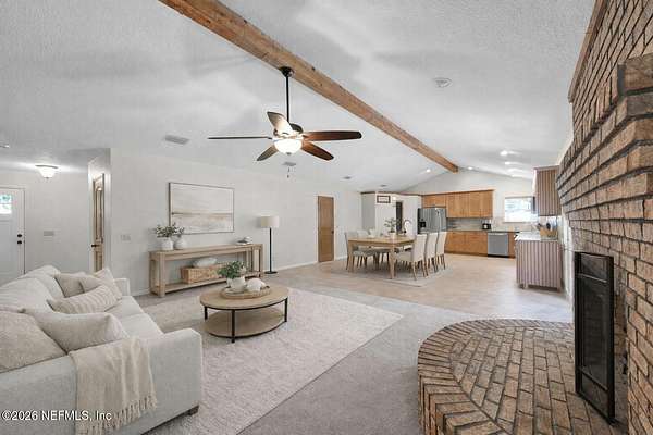 If you've been dreaming of a home where life feels quieter and more relaxed, this one may be exactly what you've been waiting for. Set on 1.57 acres with no rear neighbors, this 3-bedroom, 2-bath home offers space, privacy, and that rare sense of calm that's getting harder to find in Florida. Inside, the layout feels open and welcoming, perfect for everyday living and easy gatherings. The kitchen has room to spread out plus a true walk-in pantry. The primary suite is tucked away for privacy with a walk-in closet and ensuite bath, while two additional bedrooms share a spacious hall bath. A cozy office nook at the front makes working from home simple. Outside, enjoy a 2-car carport, attached workshop, and a barn-style structure with power for hobbies or storage. With a 450' artesian well and major updates already complete-Roof 2023, Windows 2020, Water Heater 2025-this is a move-in-ready retreat for anyone craving peaceful Florida living with room to breathe.