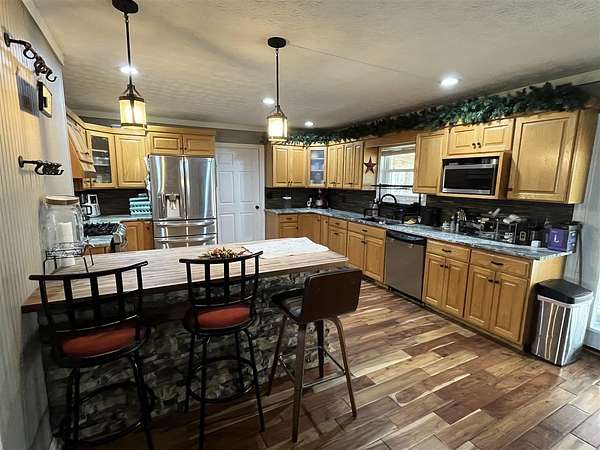 What a rare find! This beautiful home is the anchor to its own oasis. With the stocked pond, inground pool, abundance of wildlife, there is always something to do. The home has ample space for a large family. The basement has a space for a family room along with bedrooms and a full bath. Great area for a game room or family hang out. Escape through the double doors for a relaxing dip in the pool or for a little relaxation in the hot tub. Enjoy outdoor entertainment on the covered deck while grilling or watching the kids play. The 40 x 50 garage has lots of space for storage, working on equipment or whatever the need may be. There is even a covered area for outdoor storage (12x 50) attached to the
