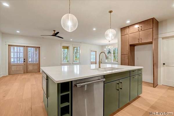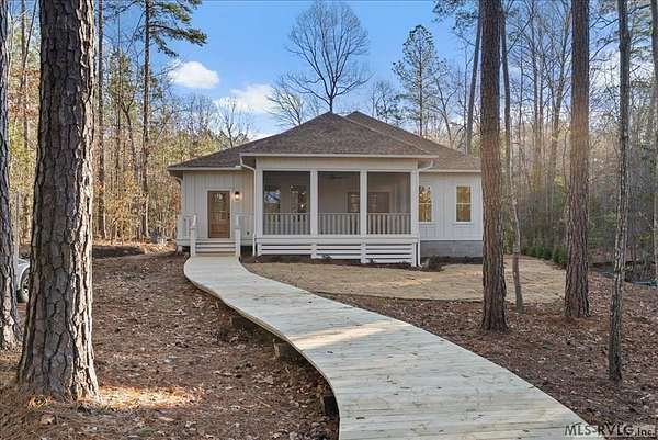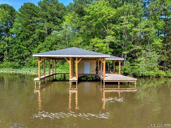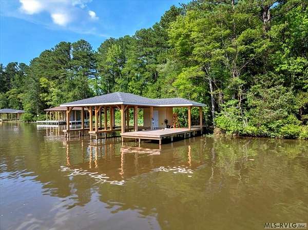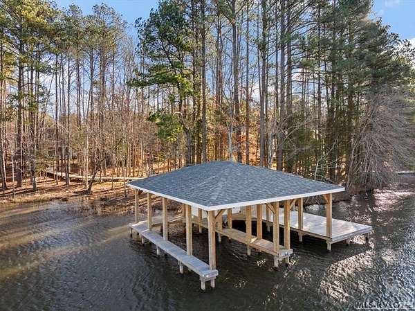 Thoughtfully designed Lake Gaston home built with elevated standards beyond typical builder-grade construction. Designed and built by a husband-and-wife builder and designer team, this home includes high quality materials in a neutral palette designed to complement lake living. The inviting full-width front porch & double mahogany doors welcome you into an open foyer. The oak engineered hardwood flooring captures your attention and leads you through the home with a cohesive flow. The gourmet kitchen is the heart of the home featuring a professional-grade Thermador appliance package, Carrara Mist quartz countertops, upgraded cabinetry, and an open-concept beverage station. The kitchen is open to the living/dining area which leads to the screened porch & open deck overlooking Songbird Creek. The primary suite with a water view boasts a large walk-in shower with stunning tile, and double vanity w/quartz countertop. Also, a walk-in closet with custom built-ins. Two spacious guest rooms, each with an attached bathroom, and a flex room that's perfect for a home office, playroom or bunkroom. Other upgrades include solid wood interior doors, real-wood custom trim, and premium delta plumbing fixtures. The exterior includes custom wood soffits, premium siding, landscaping & sod, and a walkway to the lake. Enjoy the lake from your own double boathouse. This is the area known for its peaceful calm waters & serene surroundings. Start 2026 in this beautiful new lake home that stands out from the rest.