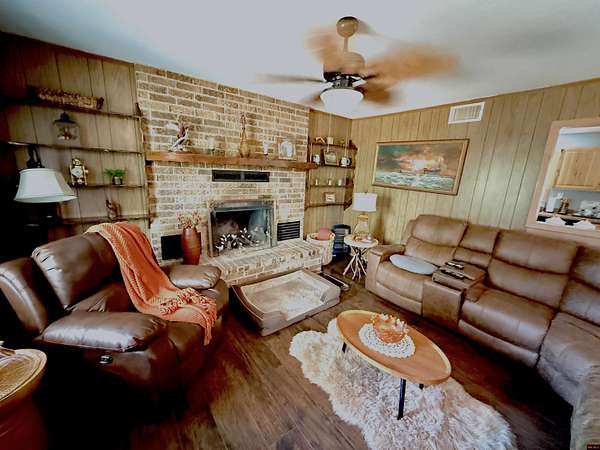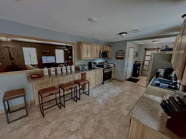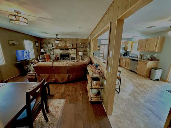Est $1,301/moThree bedroom all brick home on 5.3 acres m/l with lots of updates and a fantastical 75 X 40 pole barn with office, electric and concrete floor! Home has new in 2025 Anderson windows and total remodel of full bath and upgraded breaker box and electrical. New 30 year architectural shingles in 2021. Newer Hickory cabinets, and countertops In the spacious kitchen. Primary bedroom has beautiful shiplap ceiling. The unrestricted land is very level With private setting on pave road on outskirts of Historic River town of Calico Rock.