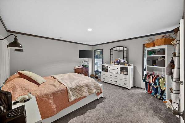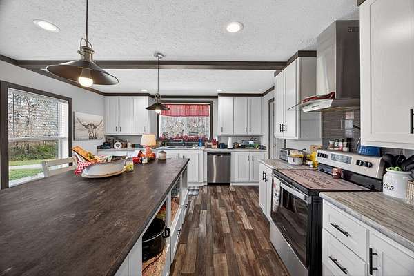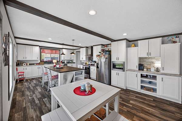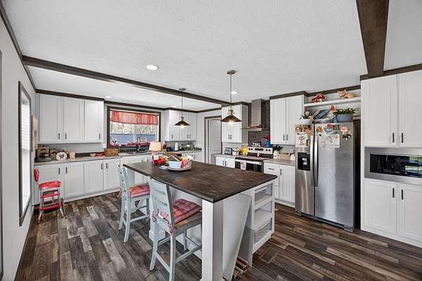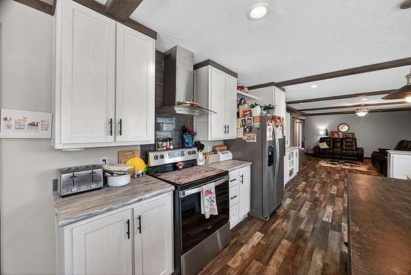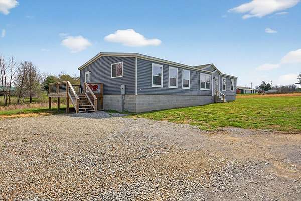 Practically brand new 2023, this beautiful 4-bedroom, 2-bath manufactured home sits on 5.8 acres, offering the perfect blend of modern comfort and peaceful privacy. Set back off the road, the property provides a quiet, secluded feel while still being conveniently accessible. Inside, you'll find an open-concept layout with plenty of space for everyday living and entertaining. The kitchen features craftsman-style white cabinetry, stainless steel appliances, and ample storage. The spacious primary suite includes a walk-in closet and a tiled walk-in shower for a touch of luxury. Outside, the property truly shines with a large barn and an additional outbuilding with a garage-perfect for storage, hobbies, or livestock. With room to roam and endless possibilities, this property is ideal for those looking to enjoy country living with modern amenities.