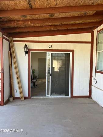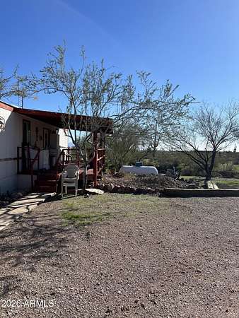 Manufactured home with 3 bedrooms and 2 baths located in Whispering Ranch in Wittmann, AZ. This home sits on 5 acres and off grid with scenic views. Home also has a large storage container and other storage rooms. Green house that can also be turned into a chicken coup. This property has plenty of space for your horses and other animals. Home has septic, hauled water. All you need is to add solar panels with battery to power it up. If you want to have privacy well this is it. FIX UP OPPORTUNITY.