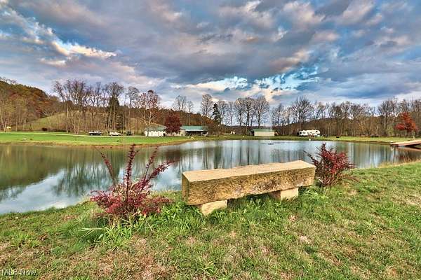 Recreational Living or Income Property opportunity. Beautiful country setting featuring three bedroom, two bath bardominium situated on 60.166 acres with a two-acre fully stocked, spring-fed pond, and 40 +/- wooded acres in the finest deer and turkey location in Coshocton County. Metal roof, propane forced air heat and central air. Pure tranquility sitting on the front porch overlooking the pond which features a multi-colored water fountain. Detached insulated heated pole building 32x42, with small kitchen area with triple stainless steel sink. Also, a 36x32 open ended metal building with lean-to. Hookup for large camper. The deep woods has trails and deer stand locations throughout. This is a must-see property. Excellent water supply. Tank and 600+/- foot leach bed septic system. Cement pad for camper with electric hookup. Video cameras on property. $2 per year Muskingum Water Conservation District fees included in tax bill.