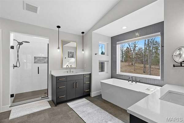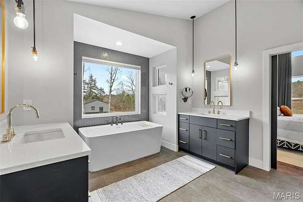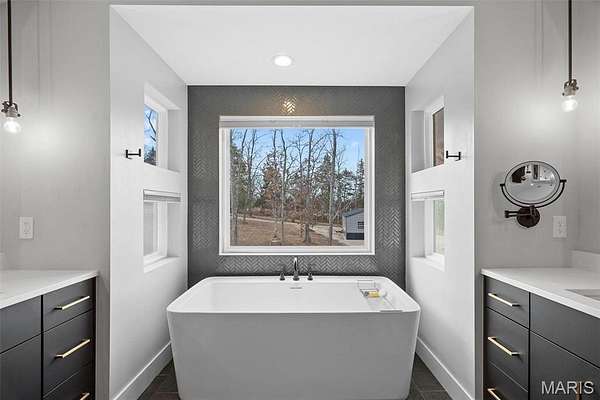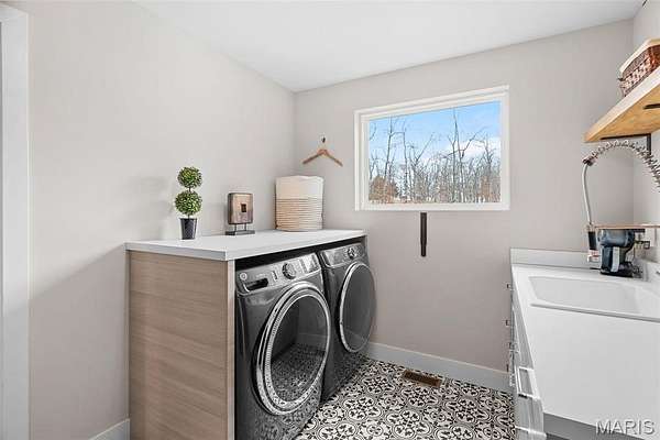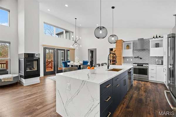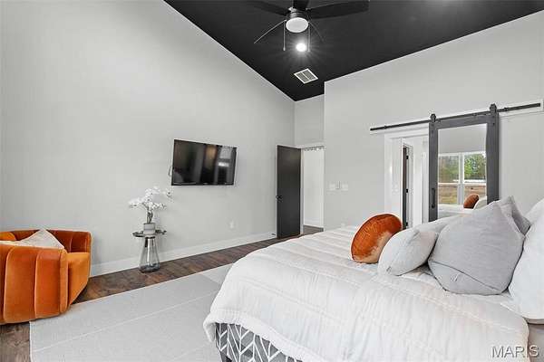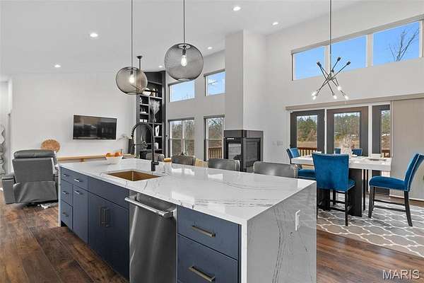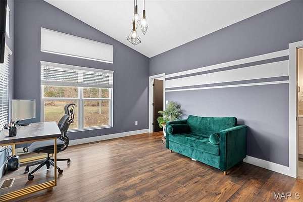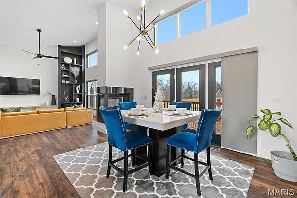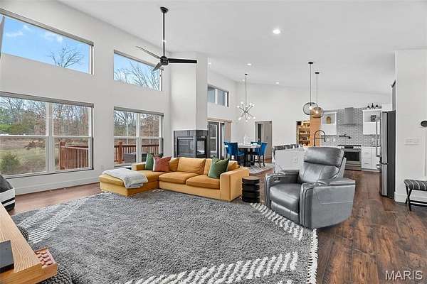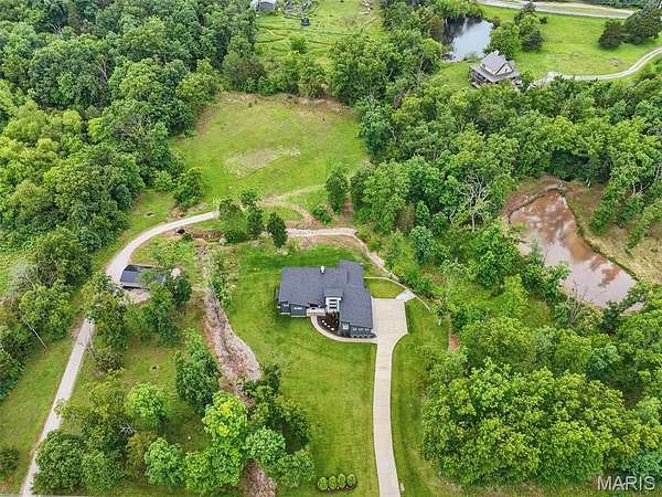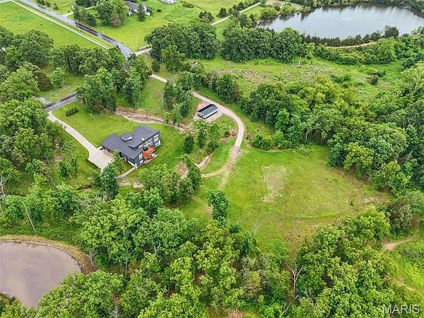 Breathtaking, 3166 sqft custom & modern retreat on 3.9 private acres with NO Restrictions or HOA. Just 4 yrs old & located by Lake Sherwood. Appraised 6 months ago for $855,000! This 4bd, 3bth Ranch fuses contemporary design w/nature. (easy to make a 5th legal bdrm). The property would make for an excellent Weekend Retreat or Air B-n-B. 15mins from Wentzville, Busch Family Farm, Daniel Boone's Home. Enjoy biking on the Katy Trail & picturesque view at great wineries like Chandler Hill, Balducci, Defiance Ridge Vineyards & many more~its Wine Country! Located just 45mins from Lambert International Airport. An impressive 67 windows flood the space w/ electronic shades & w/ natural light, while soaring 17ft ceilings amplify the open, airy ambiance. A striking 3-sided gas fireplace adds warmth & elegance. Gourmet kitchen boasts GE Cafe appliances, waterfall-edge quartz island, pot filler, walk-in pantry & appliance garages. Designed for both style & comfort, it features Mohawk floors, 5-in baseboards, soft-close doors & custom built-ins. Luxury Primary Suite w/spa-like bath w/freestanding tub & custom tile shower,16ft drapery. Entertain in the walk-out LL FamRm w/wet bar & step onto the expansive patio & deck w/a sunset awning. Plus, Hardie fiber cement siding, Plygem windows, 3-zone HVAC, 3-car garage, plus 35x18 extra garage &an irrigation system. Water Softener & Triple Filtration Water System Cuivre River Electric Gateway Hi-Speed Internet=Super Low Utilities.