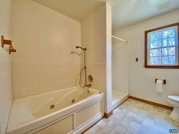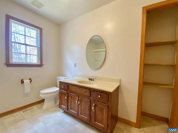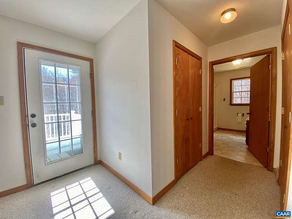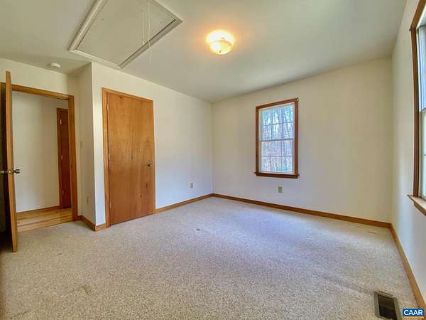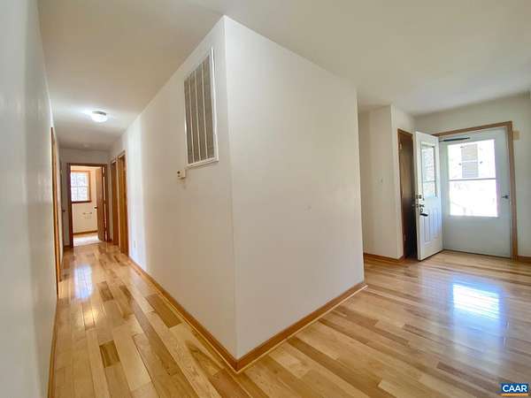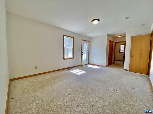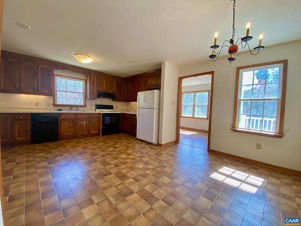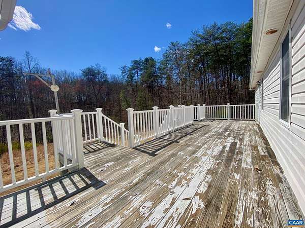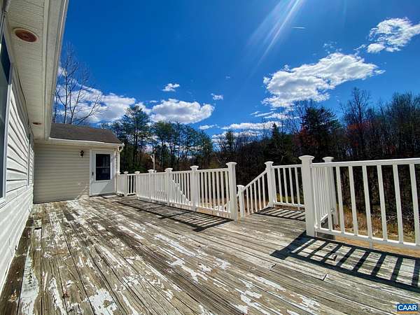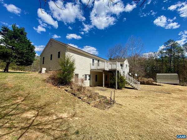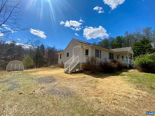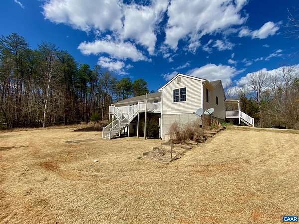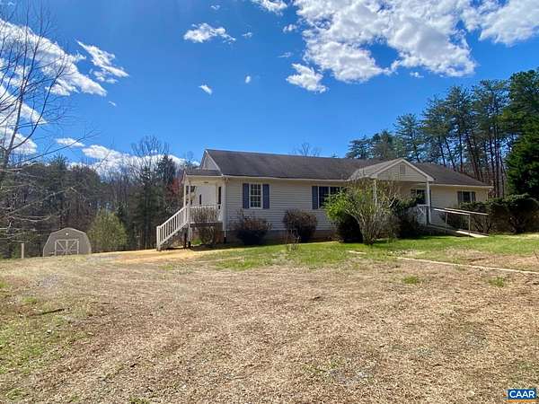 Welcome to this AWESOME Ranch home with 1 level living privately nestled on 2.98 acres with the added convenience of FIBER internet. A long, winding, tree-lined driveway creates a peaceful approach and enhances the home’s sense of privacy. This one-level home offers 3 bedrooms and 2.5 baths, featuring a comfortable living room and a very spacious eat-in kitchen ideal for everyday living and gathering.Spacious laundry room with cabinetry. Home office with built-in book shelf! Primary en-suite has direct access to back deck. Garden enthusiasts will love the sunny, open spaces perfect for planting, relaxing, and enjoying the outdoors. A full unfinished walk-out basement provides abundant storage or the opportunity to expand, there is already a rough-in bath in place—ideal for additional living space, a workshop, or recreation area. Enjoy the best of both worlds with a private setting just minutes from Scottsville’s Main Street, offering James River access, local dining, and charming shops. A rare blend of space, setting, and potential. Whole house generator!