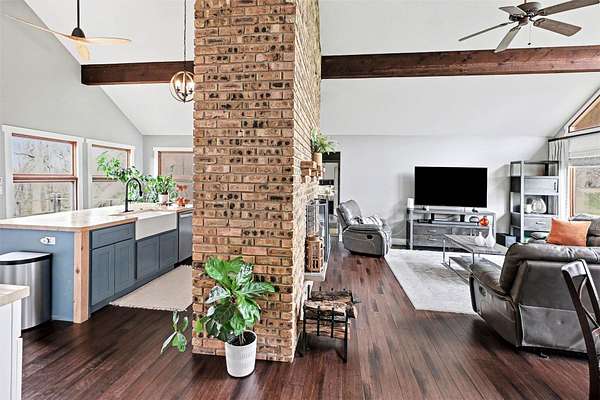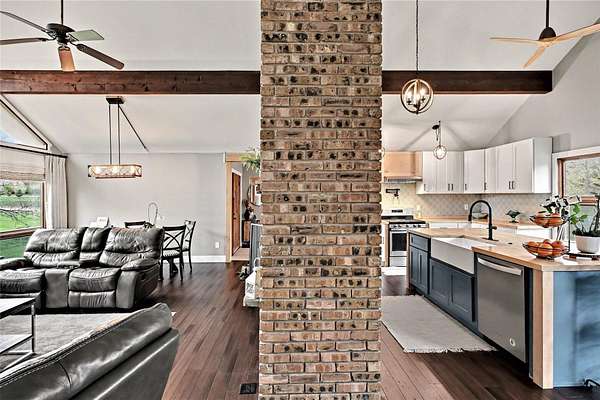 Updated WATERFRONT HOME with over $150,000 in improvements! With it's vaulted ceilings and lg windows this is a bright spacious 2,700 sq ft, 4 Bd/3 full bath ranch home on the Dowagiac River. Totally new updated kitchen includes: new cabinets, ex. lg island with lg. farmhouse sink, new stainless steel appliances and new pantry. 3 completely remodeled baths with tiled showers and glass doors. All new subflooring throughout with main level new solid wood floors and new LVP basement flooring. White oak rough-sawn beams in the main area and all new knotty solid alder wood doors throughout. Custom built-ins include: bedroom/office bookshelves, closet organizers in both primary and guest bedrooms and foyer shoe/coat closet. 2 massive brick wood/gas fireplaces (your choice of fuel). New light fixtures and can lighting throughout. Large open-plan basement family room/recreation area with custom ceiling. 1 yr old furnace and 2 yr old A/C. Beautiful 1.9 acre yard with 125' of waterfront.