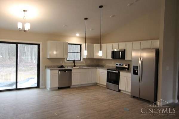 Est $2,102/moNew construction home to be completed by late March. It is a 3 bedroom, 2 bath ranch on 1.955 level acres with 1440 SF of living space. Open floorplan with a vaulted ceiling, LVP flooring, granite countertops, wood cabinets, ceiling fans in great room and all bedrooms. Includes a SS appliance package, a garage door opener for the 2-car garage. The home also boasts a front porch, which will be trimmed out with cedar and a rear patio for relaxing outside. Agent related to principal owner of LLC
