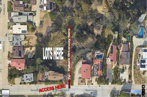 Rare Bay Park Development Opportunity - 8 Legal Lots Overlooking Mission Bay. Each listed individually. Seller prefers offers for all 4 or all 8 lots together. An extraordinary opportunity has emerged for homebuilders and real estate investors: eight legal lots in Bay Park--one of San Diego's most coveted coastal neighborhoods--are now available for purchase. With breathtaking panoramic views of Mission Bay and the Pacific Ocean, this property is truly a once-in-a-lifetime acquisition. Property Highlights: 8 Legal Lots (24,283 SF total | approx. 3,000 SF each). Flexible Offering - Seller will consider selling all 4 lots together, another set of other 4 lots adjacent available for sale. Listed separate Preliminary Design Plans available for potential development. Most lots with water views of Mission Bay and beyond. ADU potential to maximize density and long-term value Investment Potential:This is a homebuilder's dream. The combination of Bay Park's quiet, established setting with stunning coastal vistas creates a rare product type: modern residences that could be pre-sold before construction is complete. Each lot is ideally sized for a luxury single-family residence with the option to add an ADU, catering to both end-users and investors seeking long-term rental income. Few opportunities remain in San Diego for infill residential development of this caliber. Investors and builders alike will recognize the scarcity and immediate value--this is one of the last remaining multi-lot development parcels with sweeping views in the city. Location Benefits Bay Park's central position offers the best of San Diego coastal living: Minutes to Mission Bay, Pacific Beach, and La Jolla, Easy access to I-5 and I-8 freeways for seamless connectivity, Proximity to vibrant dining, shopping, and recreation hubs, A serene residential neighborhood that feels tucked away, yet is close to everything The Vision: Envision a collection of luxury coastal homes perched above Mission Bay, where residents enjoy sunset ocean views, morning walks to the beach, and quick access to San Diego's most dynamic coastal communities. This property offers the unique chance to create a signature residential enclave that will define Bay Park living for years to come. Act Now - Opportunities Like This Don't Last: This offering represents one of the last prime development sites in the Bay Park/Pacific Beach area with unobstructed bay and ocean views. For the forward-thinking builder or investor, the potential is nothing short of remarkable. The access is from Ticonderoga St. There will be an extended driveway to access lots from that street. Please see picture so identify what driveway will be extended. Go through that driveway to access lots. Renders and design plans showcasing potential builds are available. Buyer to verify all information and conduct due diligence before purchase. Seller open to entertaining all reasonable offers. Don't miss this rare chance to secure a piece of Bay Park's finest views! 8 lots available APN's 4250423100,4250423000,4250422900,4250422800,4250422400,4250422500, 4250422600,425042270 Seller financing available.