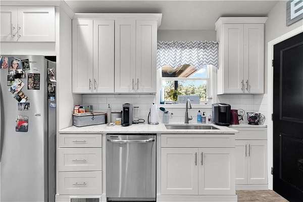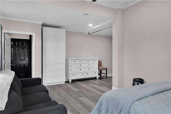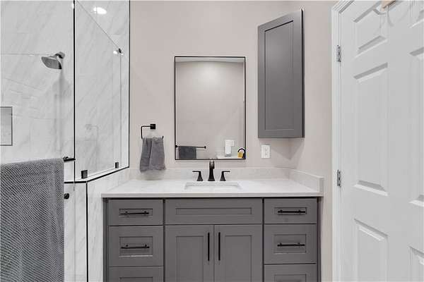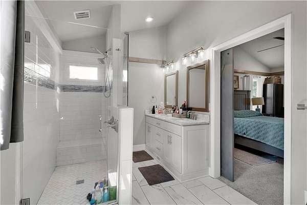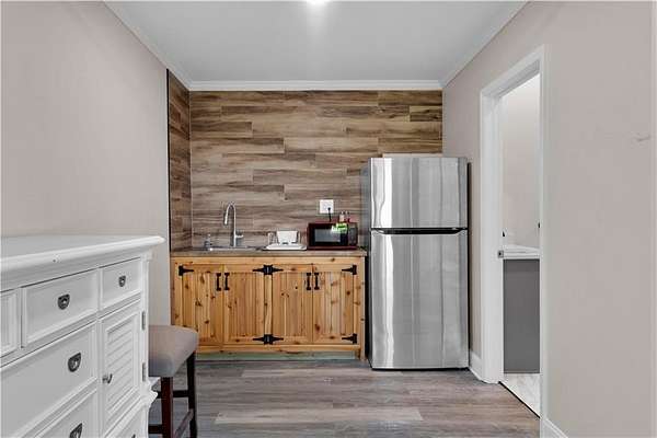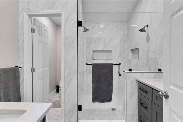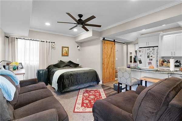 The main-level in-law suite offers complete independence with its own kitchen, bedroom, and full bath -- ideal for multi-generational living. A separate studio-style apartment provides even more flexibility, with a kitchenette, luxurious bath, and private covered deck overlooking the lush gardens -- perfect for guests, extra family, or a home office.