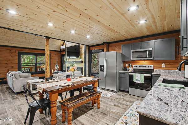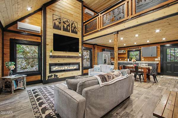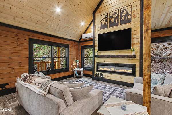 Newly completed in January 2024, this custom-designed mountain cabin delivers the perfect blend of modern comfort and rustic charm--set on an expansive 6.3-acre private wooded retreat. Offering 2 bedrooms, 2 bathrooms, and a spacious loft, this thoughtfully crafted home is surrounded by nature with no neighbors in sight, providing true privacy and seclusion. Despite its peaceful setting, access is effortless with paved roads and no steep inclines--an increasingly rare find in the Smokies. Inside, the cabin showcases a refined rustic-modern aesthetic with tongue-and-groove finishes throughout--no drywall--creating a warm, authentic mountain feel. The open living space is anchored by a custom electric fireplace, complemented by luxury vinyl plank flooring, custom granite countertops, and carefully curated finishes that elevate both style and functionality. Step outside to enjoy the concrete porch and patio, where a gentle mountain stream flows alongside the cabin, adding a tranquil, natural soundtrack to your surroundings. The heavily wooded acreage ensures a low-maintenance, serene environment--ideal for relaxation or future outdoor enhancements. Though never placed on a rental program, this property presents exceptional income potential, with strong projections from multiple local property management companies. Located just a short drive from top destinations like Dollywood, as well as the attractions, dining, and shopping in Pigeon Forge, Sevierville, and Gatlinburg, this cabin offers both convenience and escape. Residents also enjoy access to community amenities including a resort-style pool, pickleball court, frisbee golf course, playground, and multiple scenic mountain streams throughout the development. An added bonus: a prepaid garage space near the clubhouse is available and transferable to the new owner. Whether you're seeking a private mountain getaway, a second home, or a high-performing investment property, this cabin checks every box. Schedule your private showing today--this is one you don't want to miss.
