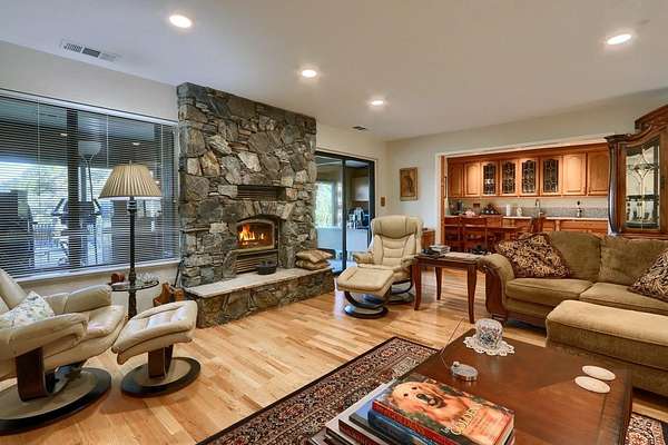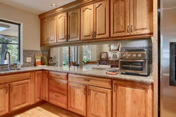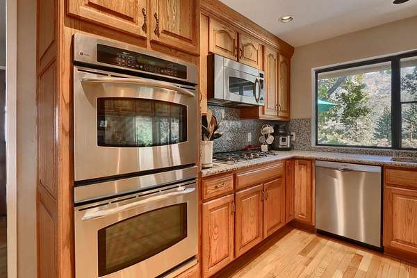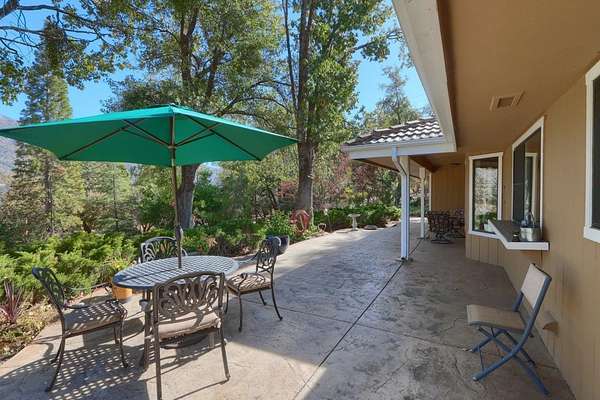 Custom built dream home in a gorgeous setting with beautiful views! This 3 bedroom, 2 bath home offers a peaceful front patio, large back patio, owned solar, detached 2 car garage, attached carports, RV parking & so much more! From the time you enter the gated driveway, this beautiful 5.06+/- acre property offers you relaxing views in every direction. The living room has a cozy fireplace with woodstove insert, the dining room is complete with a built-in hutch, wet bar & wine refrigerator, the kitchen has lots of Granite counter space, built-in appliances, a pass through to the breakfast nook & there is a laundry room with a large pantry space. The primary bedroom is complete with a double sink vanity, separate shower & jetted tub. RV covered parking with hookups, Tuff shed and a separate open storage space with multiple bays. Extra care was given to this home & its improvements! Including 2x6 construction, R-19 insulation, resealed driveway, tile roof updated, hand textured walls & ceilings, self-closing kitchen & bathroom drawers, Granite counters in kitchen & bathrooms, PEX plumbing & a custom rock fireplace. RV parking with septic, the garage has a half bath, 2 owned propane tanks & a fenced-in organic garden area. Excellent vacation destination home just 2 miles to Bass Lake, 51 miles to Yosemite National Park Badger Pass Ski Resort & 54 miles to China Peak Ski Resort! Come & fall in love with everything this custom home has to offer you!
