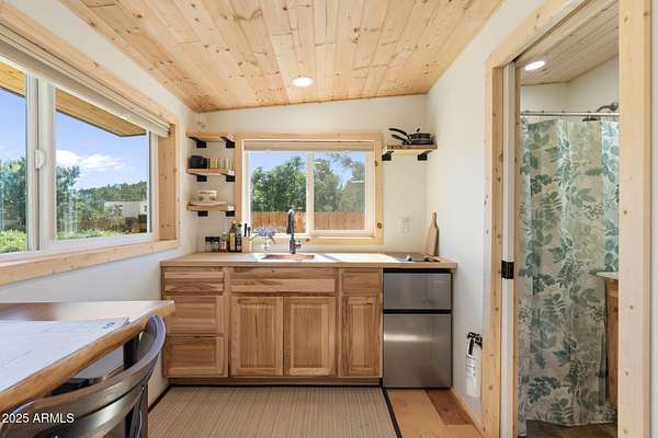 A 200sqft "shed" is the perfect off-grid escape, running on solar and private well water. It can serve as a base of operation while you build out the property to your liking, and could eventually be legally converted into a guest house once a site-built main house is completed.
