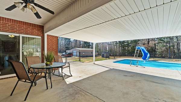 - Covered Patio, Enclosed Pool, Guttering, Inground Pool
