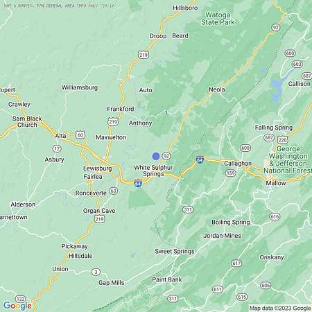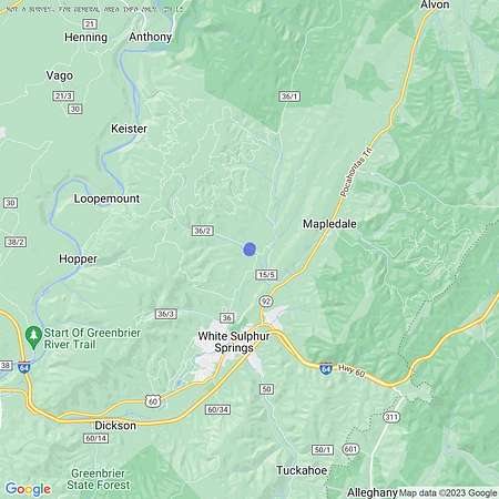 Starting at Lewisburg depart onto West Washington Street for 1.13 miles; new name straight onto Midland Trail East for 8.33 miles; turn left onto Big Draft Road for 0.18 miles; fork slight right onto Big Draft Road for 0.7 miles; new name straight onto County Route 36 for 1.62 miles; continue left onto County Route 36/2 for 0.25 miles; arrive left onto County Route 36/2 for 0 miles;